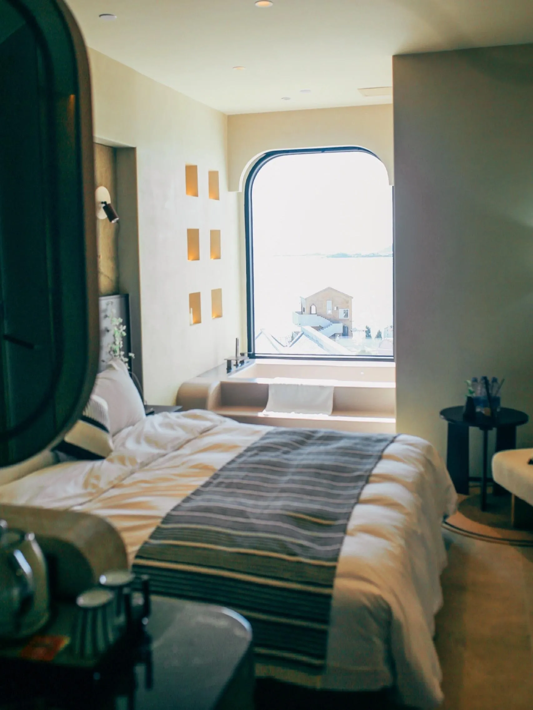 住宿方面,橘若行馆的房间精致温馨,全新装修使得每个房间都干净整洁。最吸引人的是带有落地窗的浴缸,泡澡时就能欣赏海景。酒店还贴心地准备了欢迎水果和闽南地道的早餐面线糊。