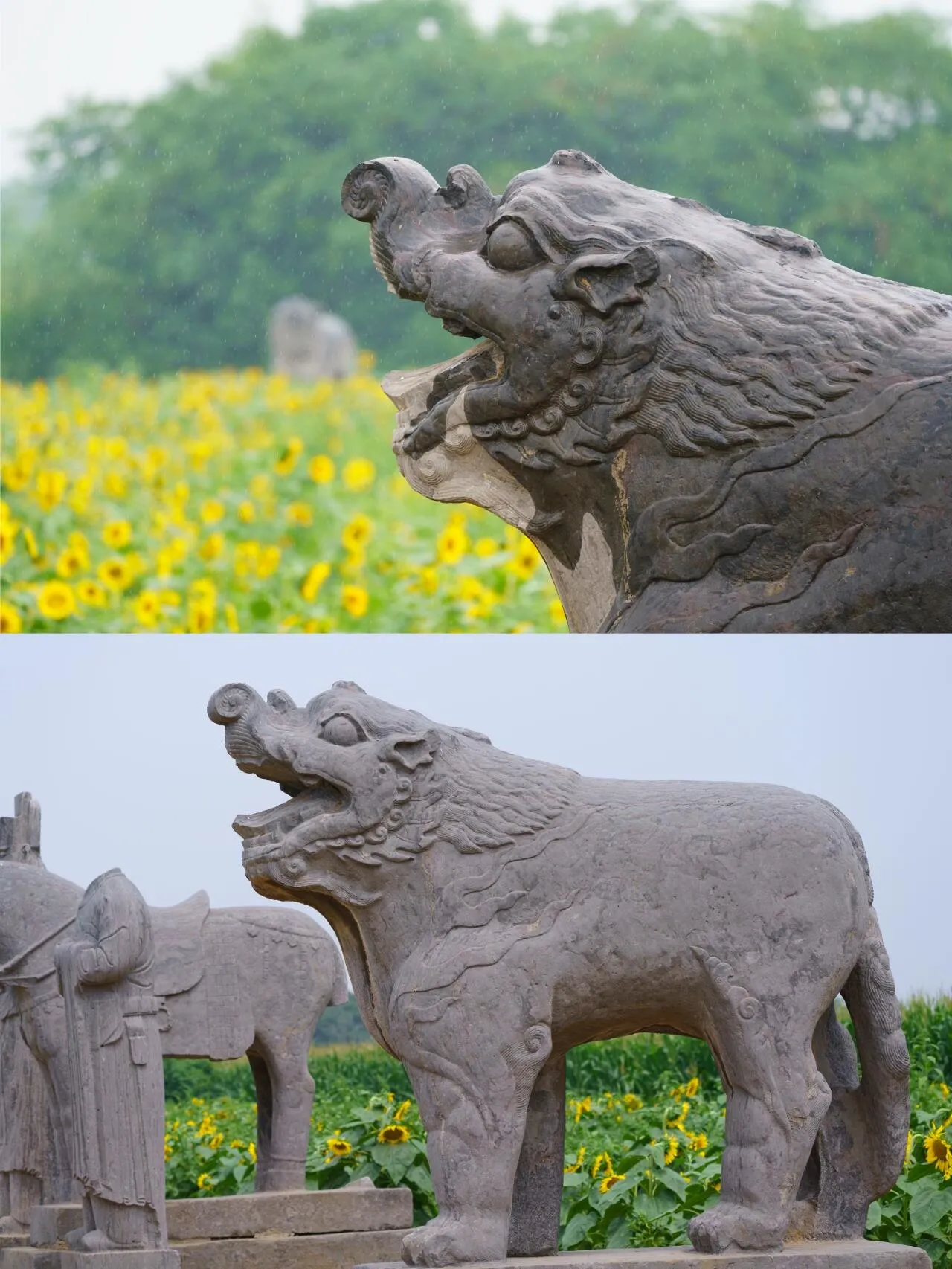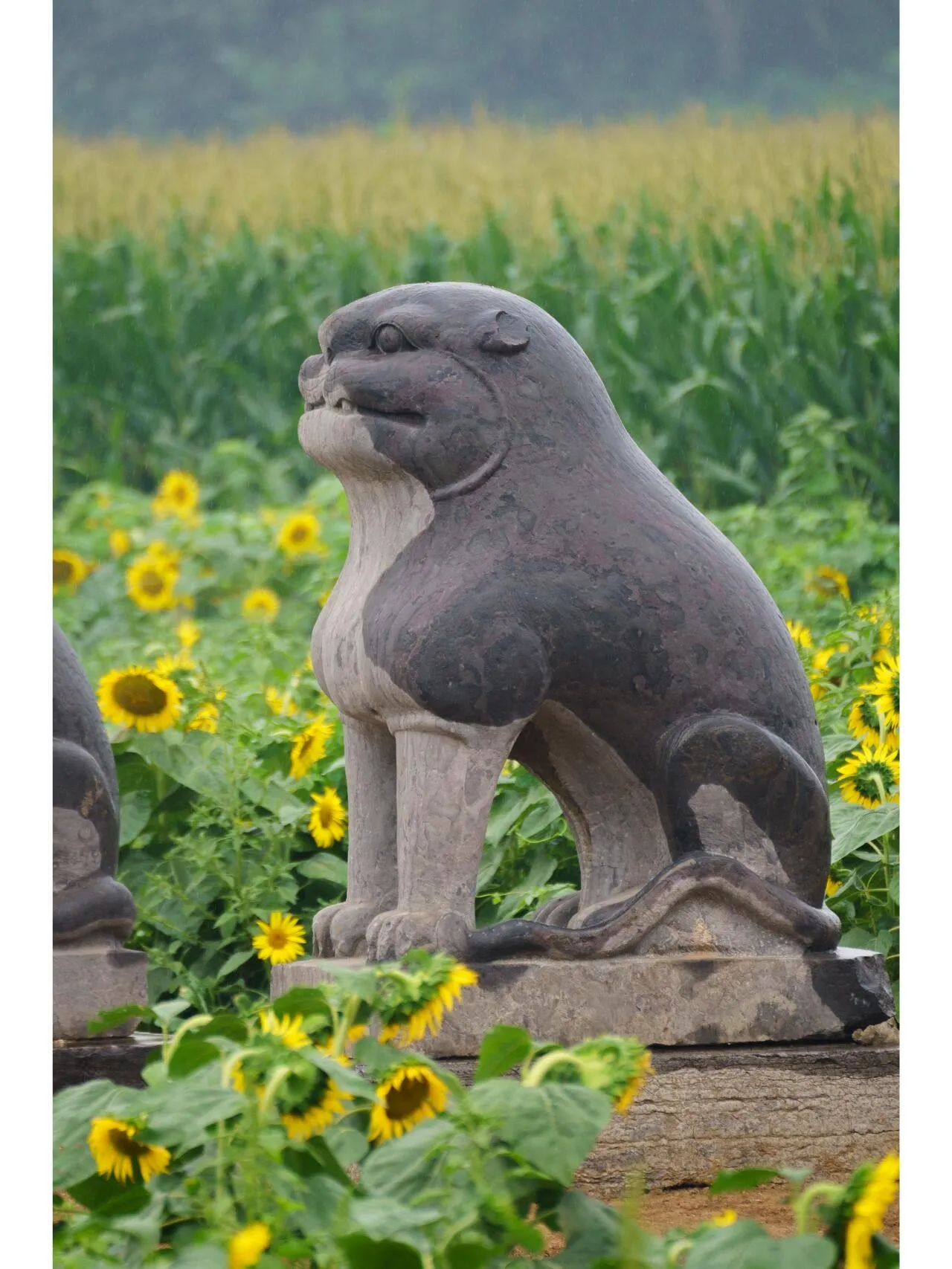 永泰陵的神道两侧现在种植着向日葵 ,周围则是玉米田。 春秋两季,陵墓旁边是一片金黄的麦田 ,与油菜花相映成趣,构成了一幅独特的田园风光。值得一提的是, 这样的景象在未来可能会消失,因为按照规划,这里将来会建成公园 。