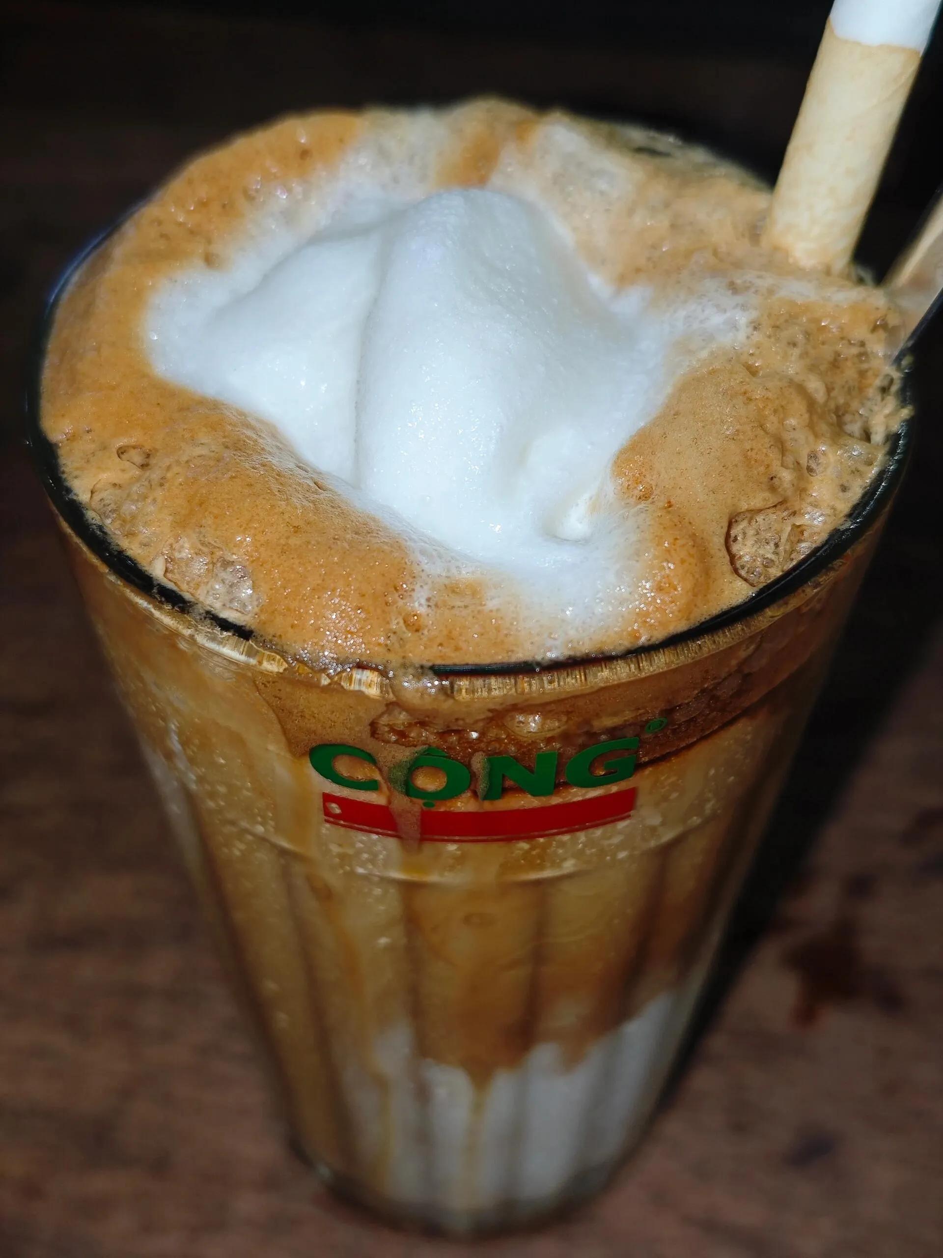 Cong Caphe的椰子咖啡是越南版的生椰拿铁。滴漏咖啡打上奶泡,中层是微苦的咖啡,底层椰子味浓郁,搅拌后口感更佳。