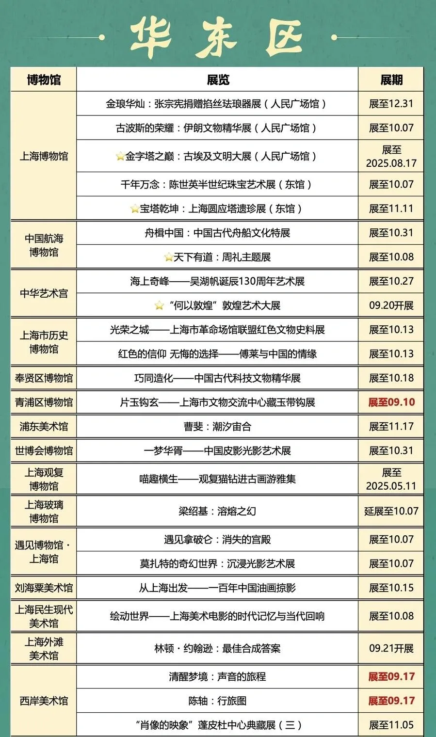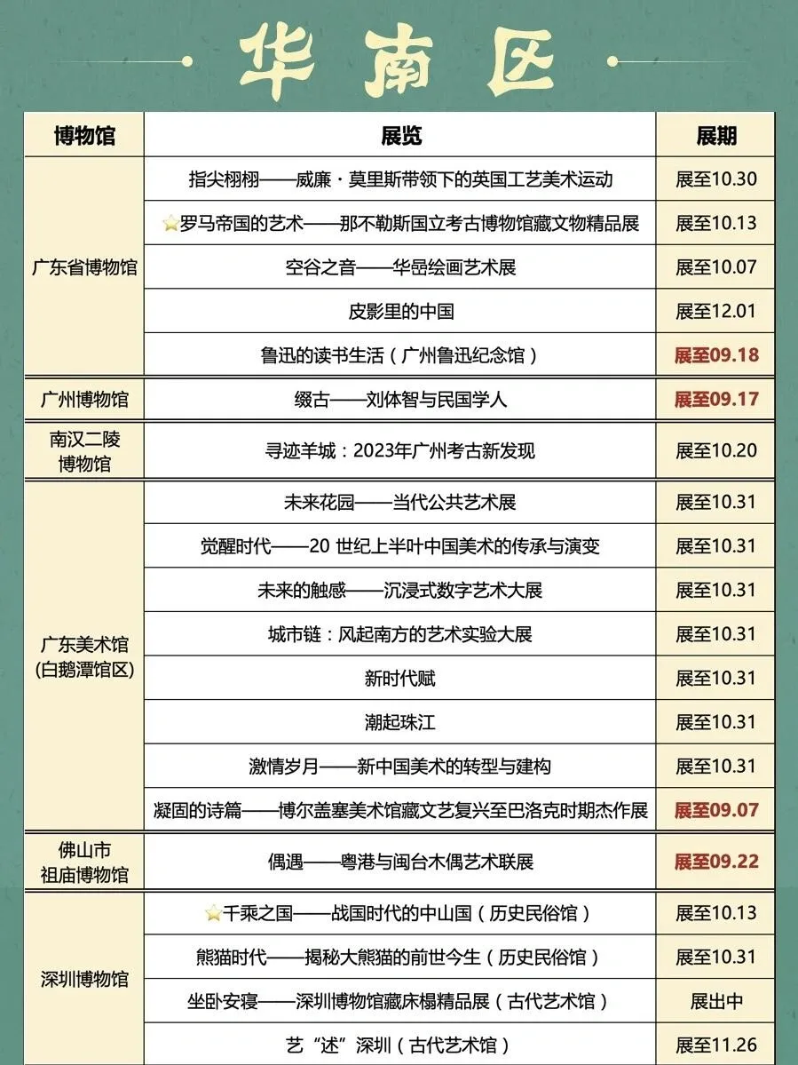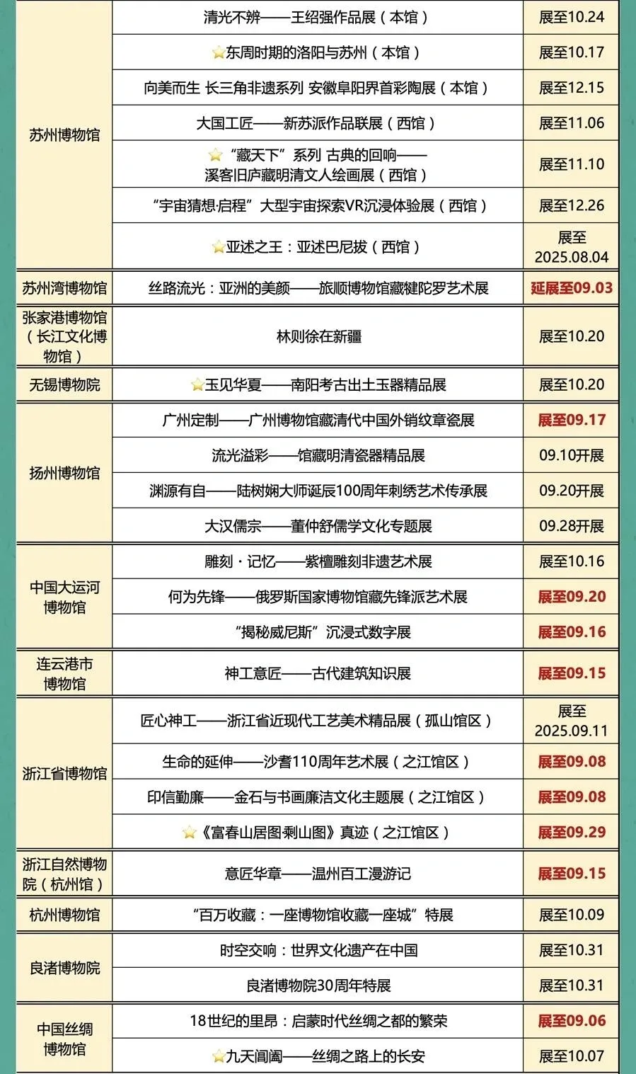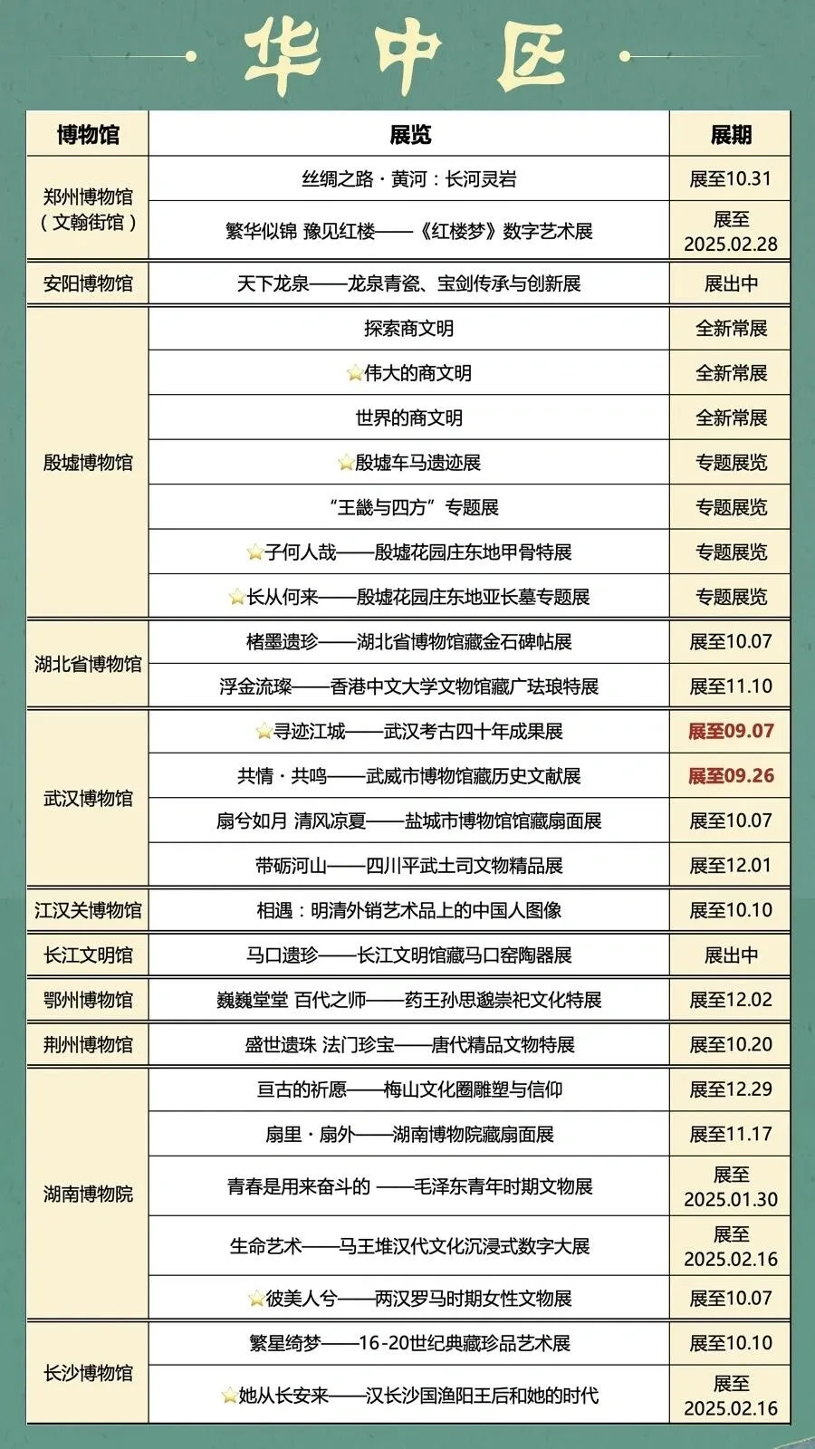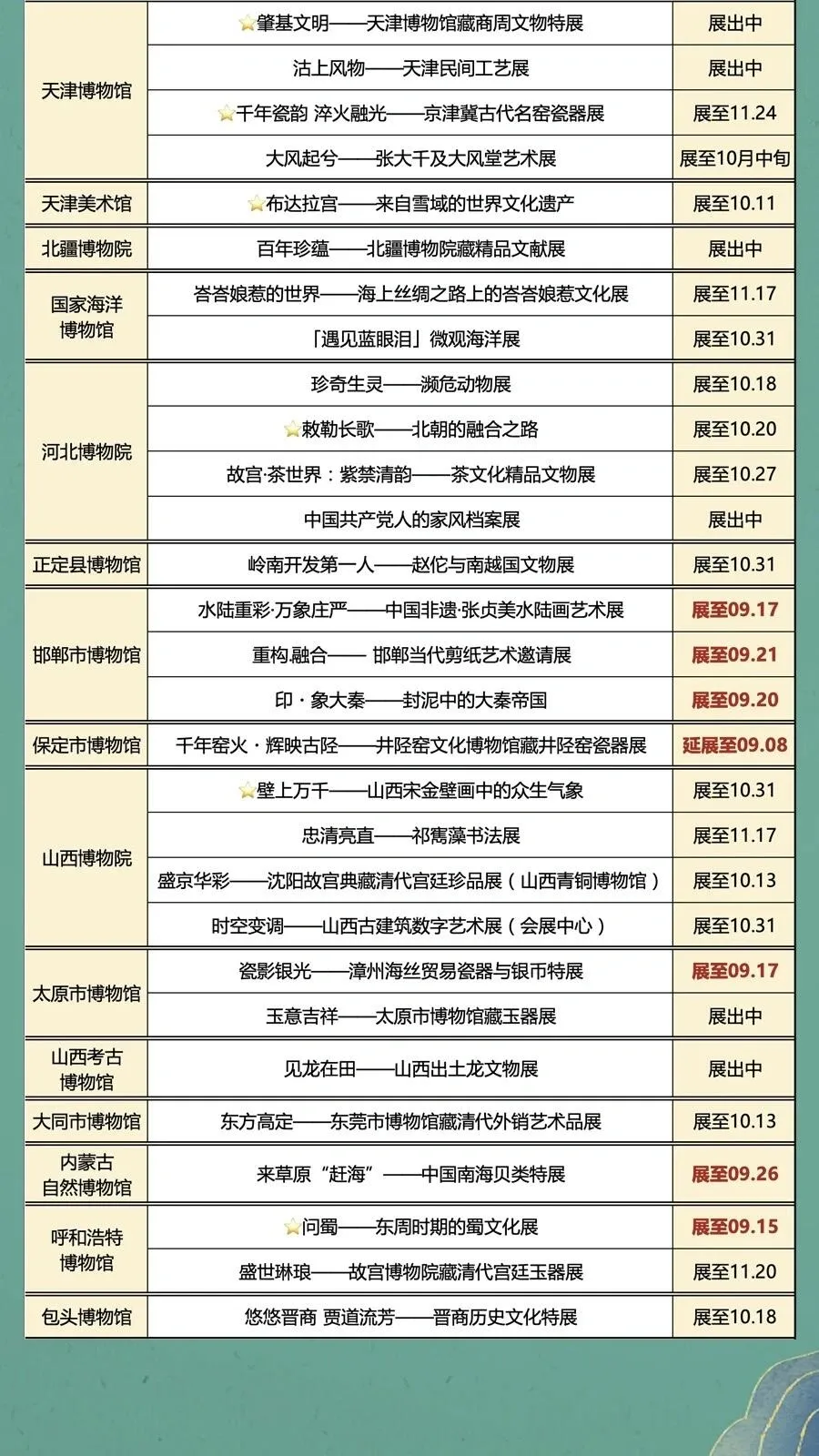 金秋九月,全国各地还有众多精彩展览即将推出。文章提供了七大区域的展览清单,其中标注星号的是特别推荐的展览。无论是对历史文化感兴趣,还是热爱艺术展览的人士,都可以根据自己的兴趣和地理位置,选择合适的展览参观。