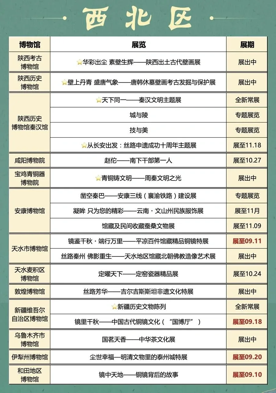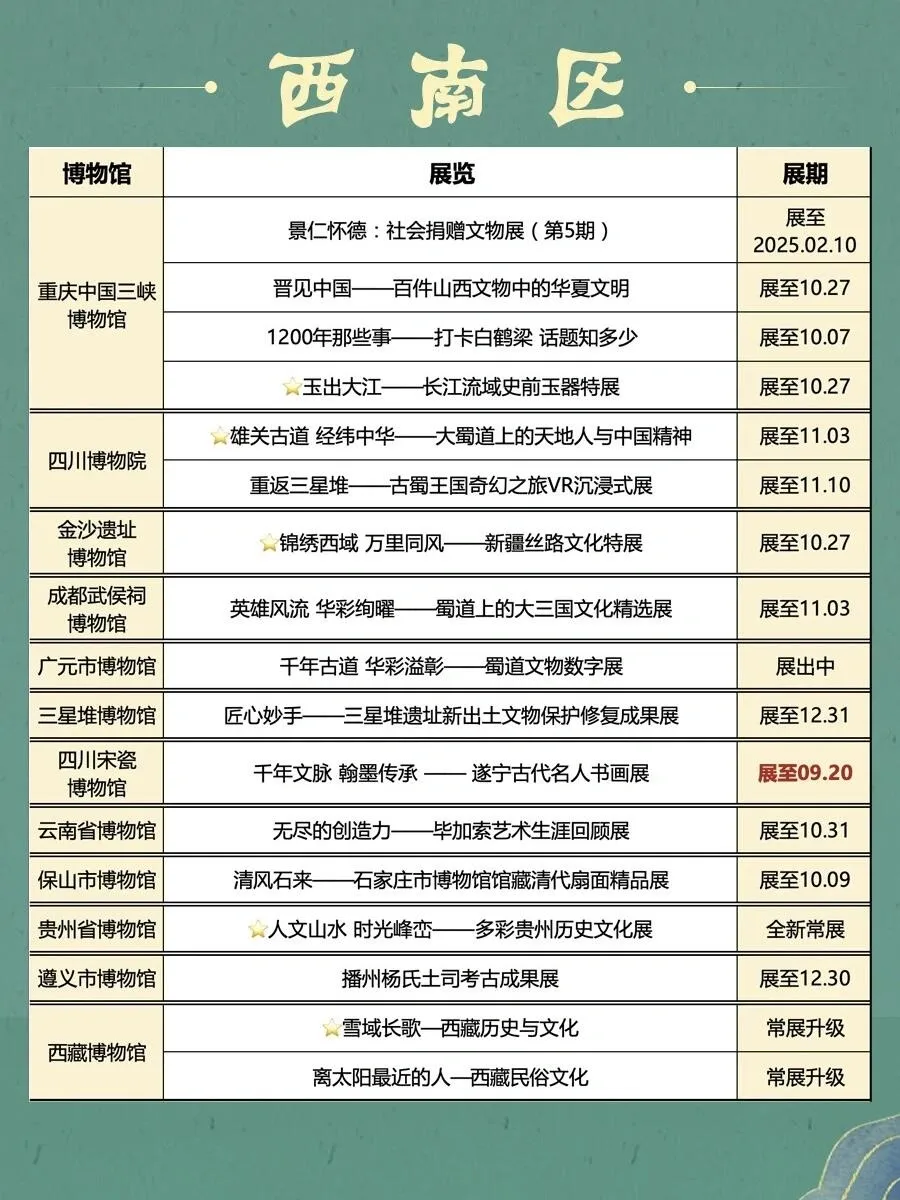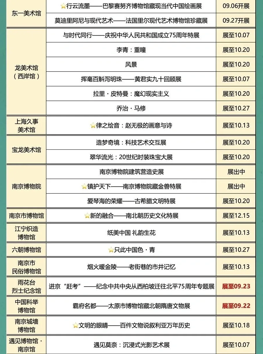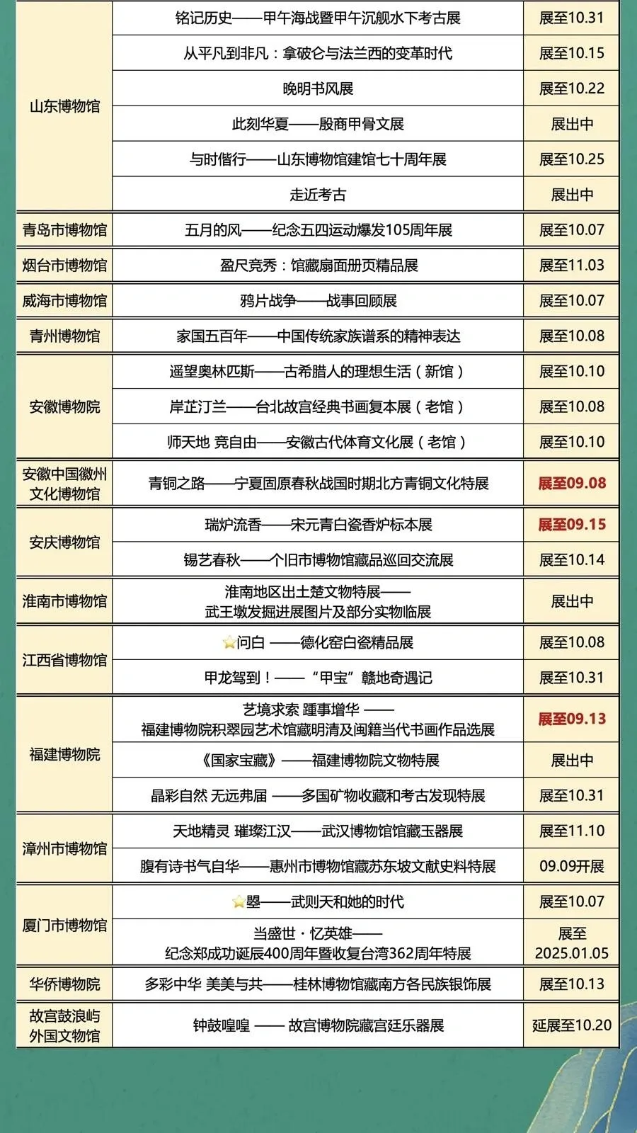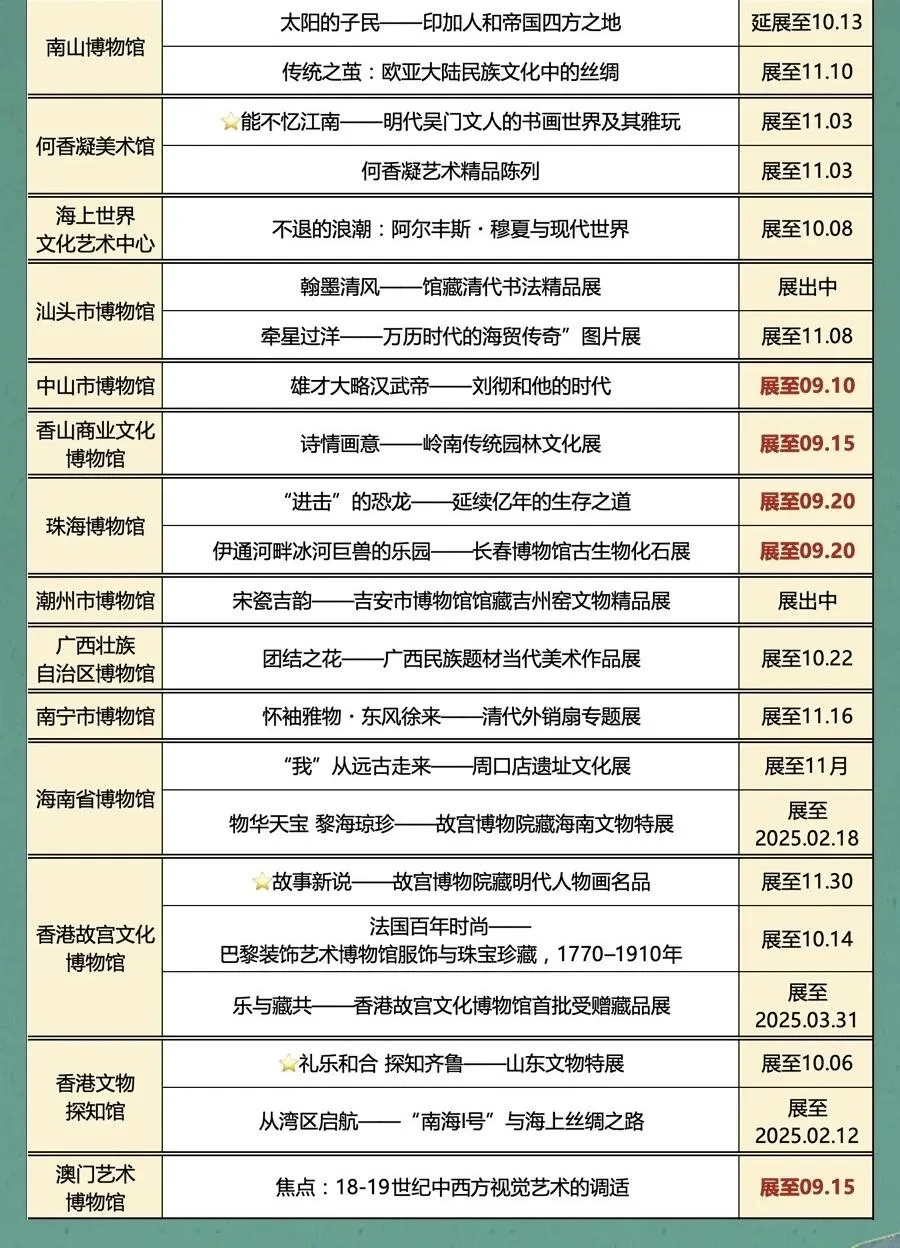 金秋九月,全国各地还有众多精彩展览即将推出。文章提供了七大区域的展览清单,其中标注星号的是特别推荐的展览。无论是对历史文化感兴趣,还是热爱艺术展览的人士,都可以根据自己的兴趣和地理位置,选择合适的展览参观。