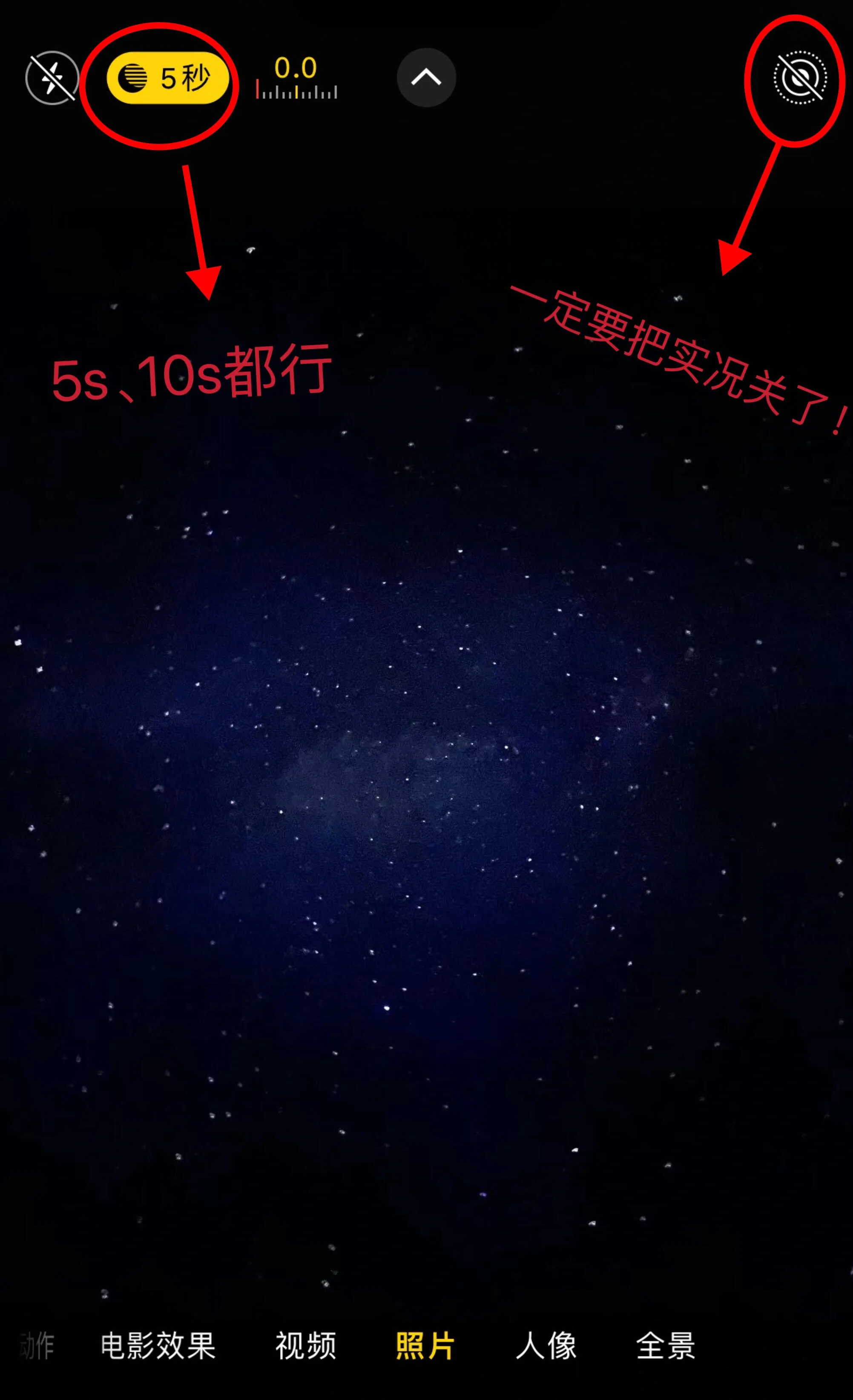 拍摄星空只需要简单的设备:手机、手机支架和手电筒即可。使用iPhone拍摄时,关闭闪光灯,将快门时间设置为10秒。为了增添氛围感,可以使用黄色手电筒打造暖光效果。拍摄时需要保持静止几秒钟,以避免照片模糊。拍摄后,适当调整对比度可以使银河星空更加清晰。