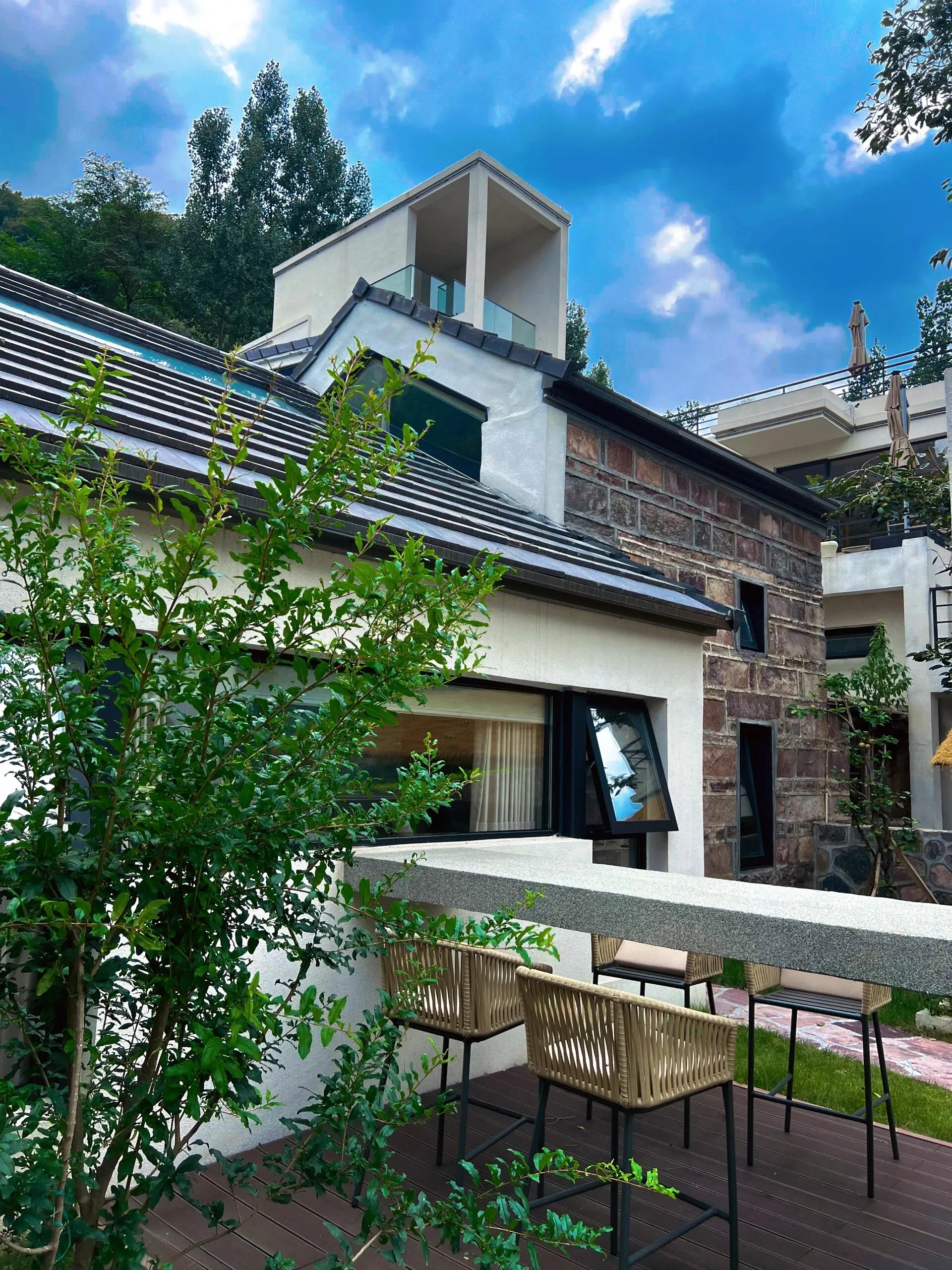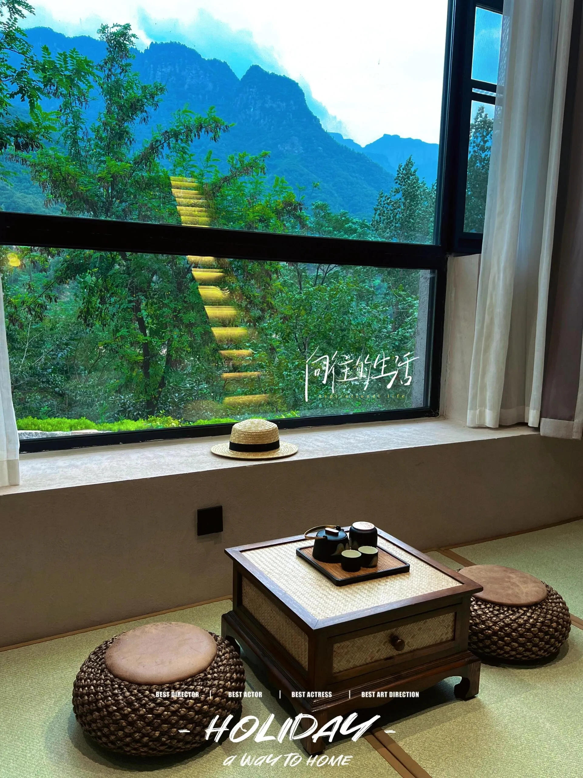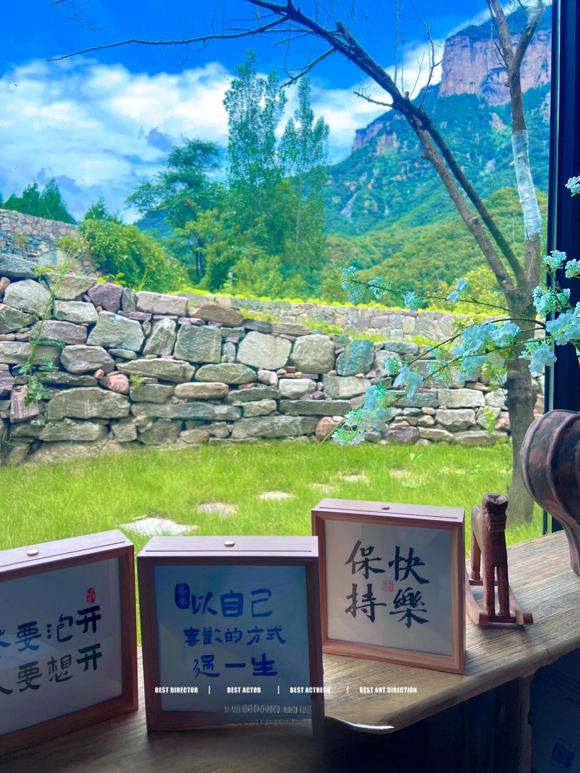 六六山居民宿位于郑州周边约1.5小时车程的八百里太行山南部 ,毗邻八里沟天河瀑布,是一处隐匿于山间的世外桃源。 这里共有九个院子依山而建,宛如一个小山村 ,整齐地坐落在山间。 每个客房都有诗意的名字,如山岚、陌野、觅林等 ,让人仿佛置身画中。