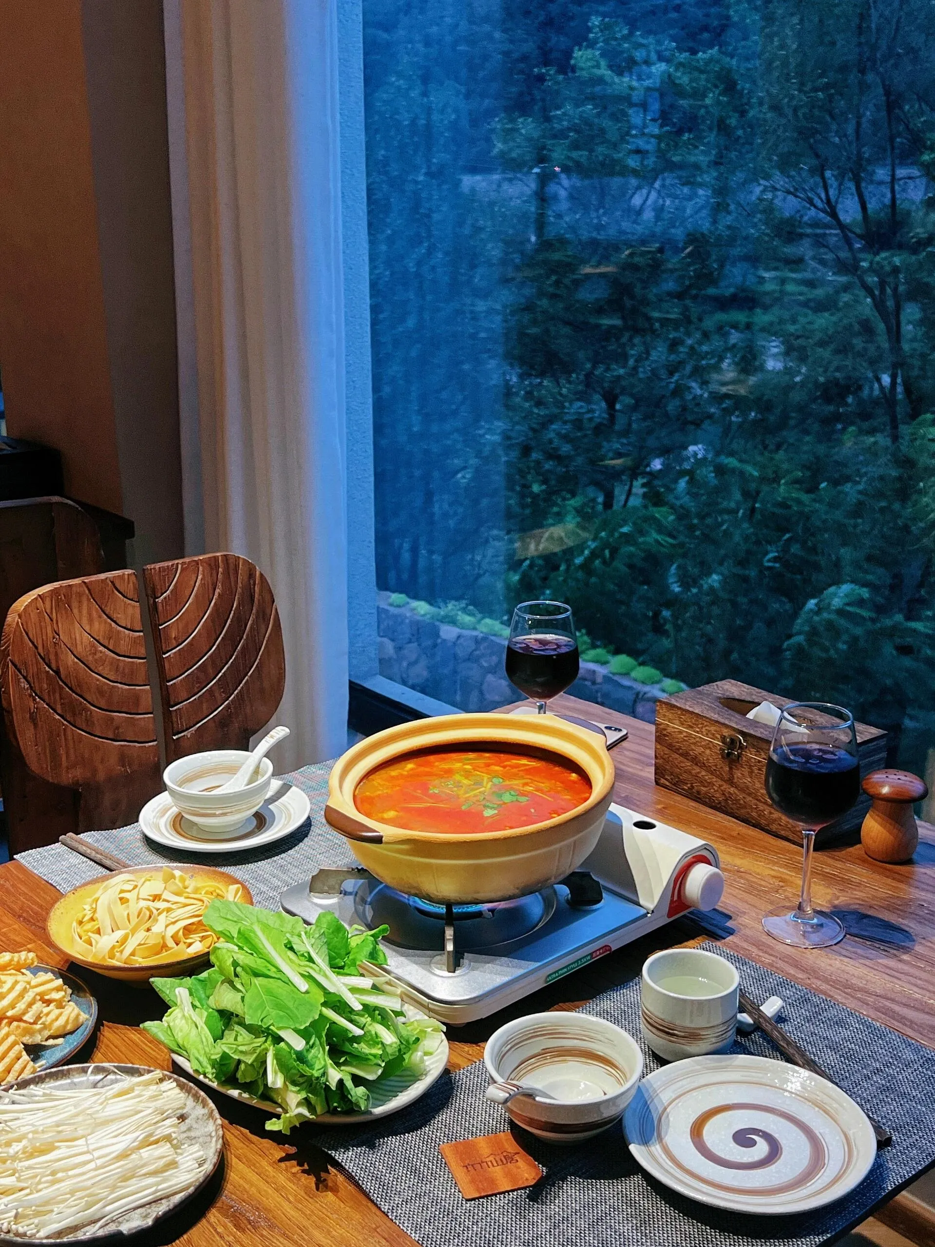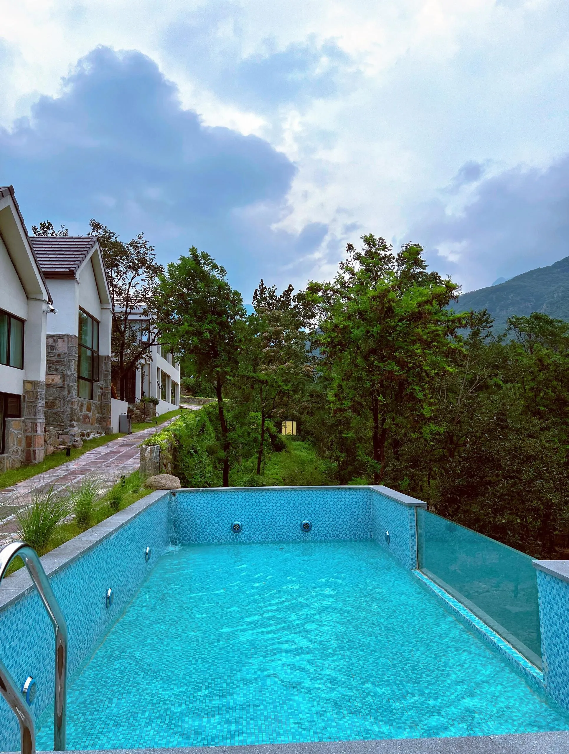 清晨在这里醒来,伴随着山间鸟鸣,品一杯咖啡,享受宁静悠然的时光。 中午可以在山食餐厅品尝当地新鲜的山珍,如走地鸡、野山菌、山韭菜等 ,味道鲜美可口。午后,游客可以在室外泳池畅游或躺在池畔躺椅上,感受山风拂面的清凉。