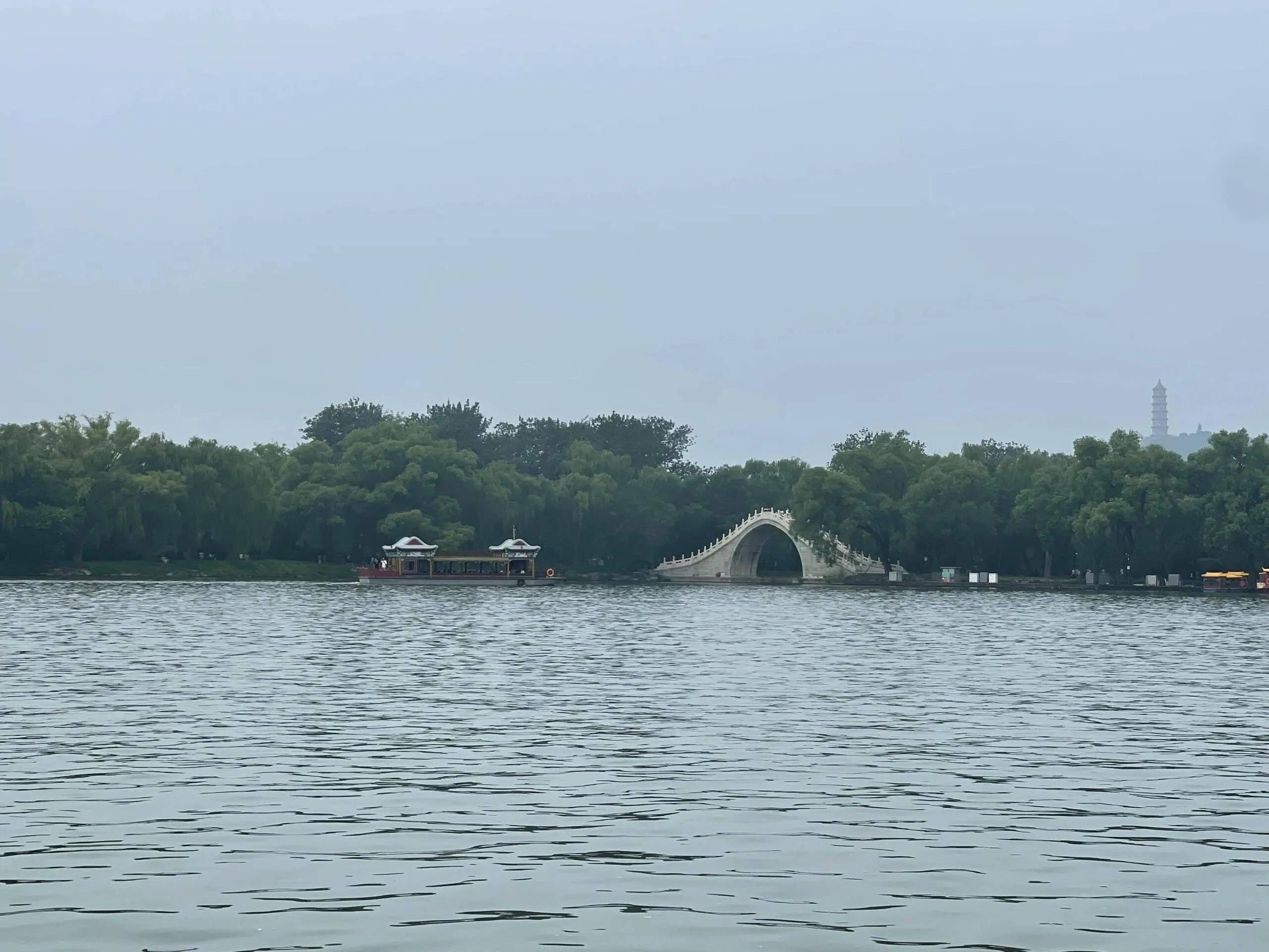 从北宫门进入颐和园,入口处人不多。虽有建议先上厕所再进园,但我发现园区内厕所也不拥挤。需注意苏州街和佛香阁周一不开放。进园后我没有选择爬四大洲,而是直接右转,乘船前往十六桥,最后从东门离开。