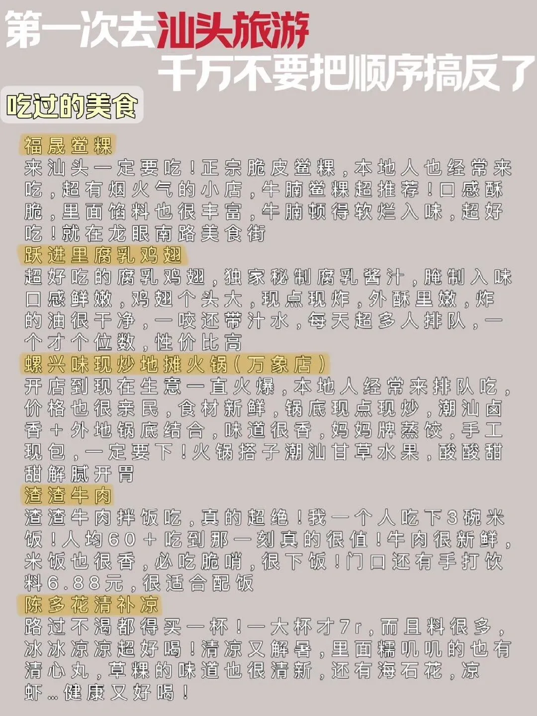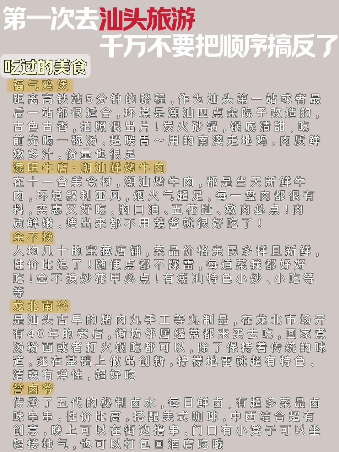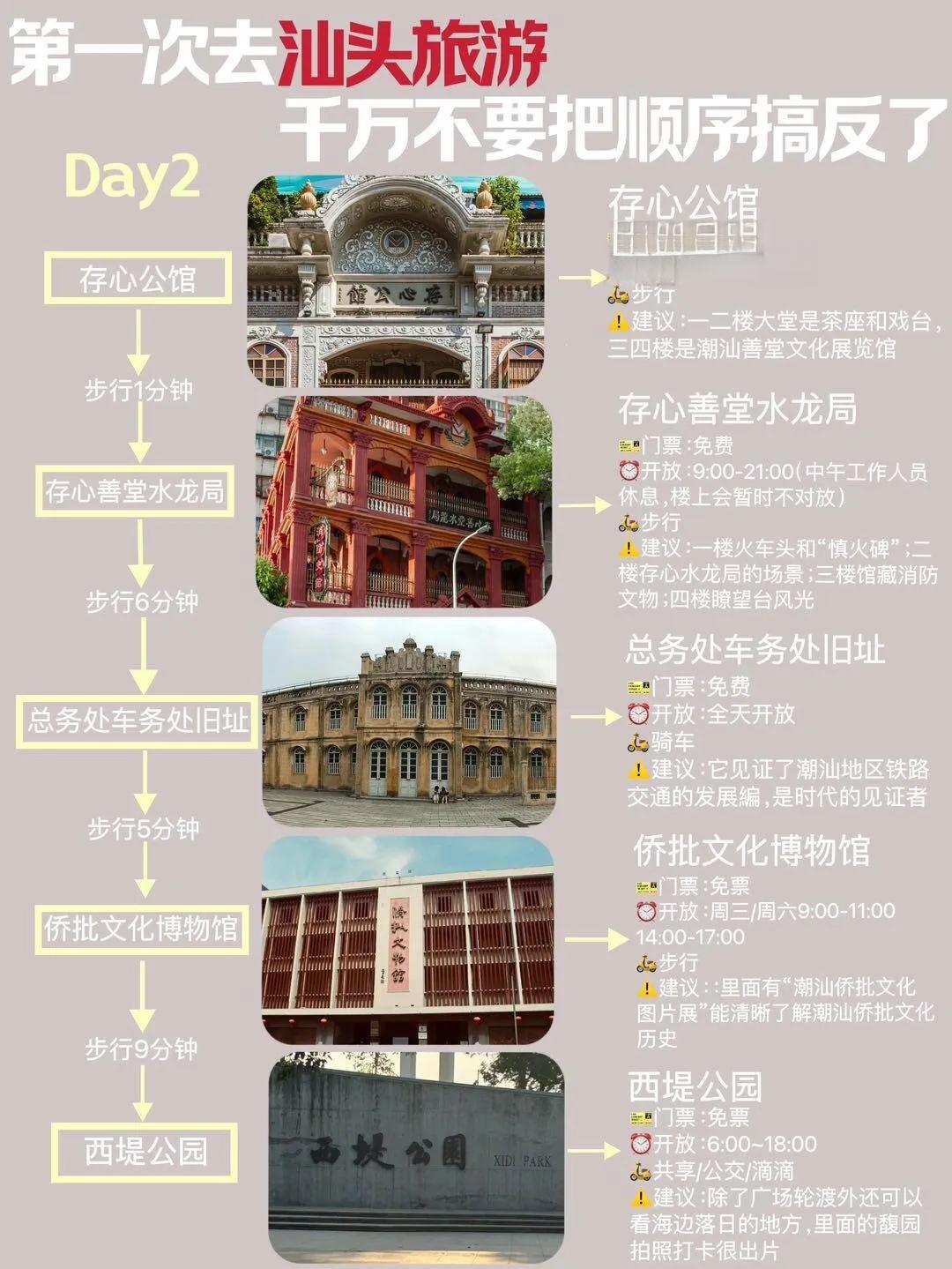 这条路线涵盖了汕头的历史、文化、自然景观和美食,相信能让你的汕头之旅丰富多彩,满载而归!
