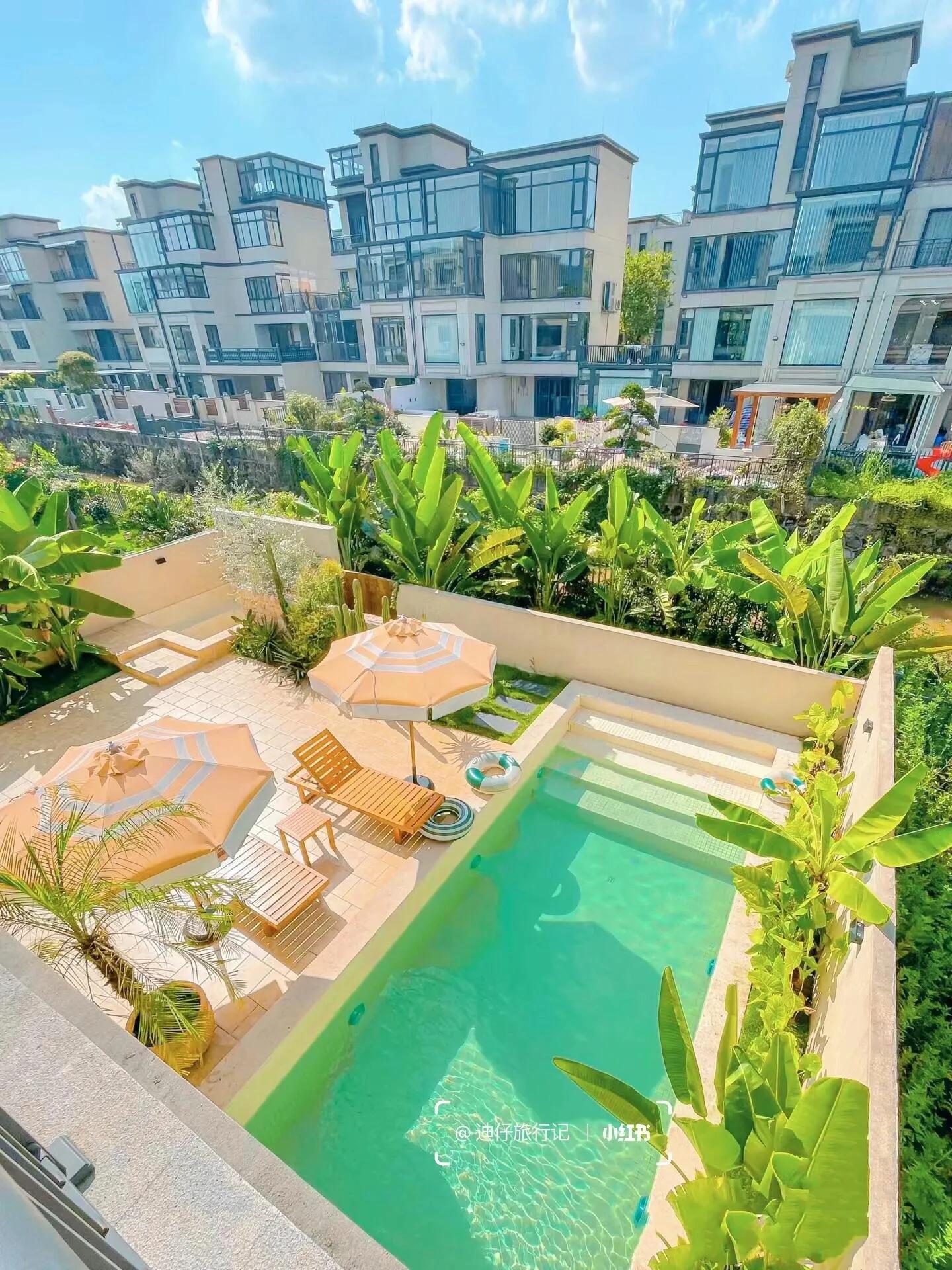 这个泳池别墅是一个让人仿佛置身国外的度假胜地,特别适合在中秋、国庆等假期带孩子来玩耍。无论是想享受异国风情的度假氛围,还是为孩子们寻找一个欢乐的乐园,这里都是一个不错的选择。