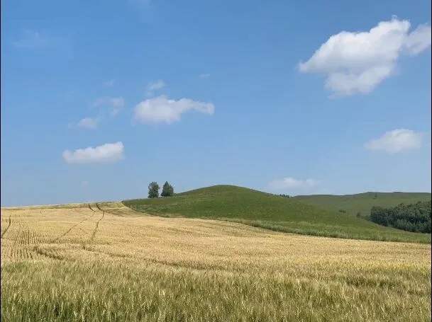 最终选择的露营地点位于一个麦田和白桦林的过渡区,没有在草场上,也是为了尽可能不打扰当地牧民放牧。远离公路以后,随便挑一个地方拍出来都是大片,景色非常优美。