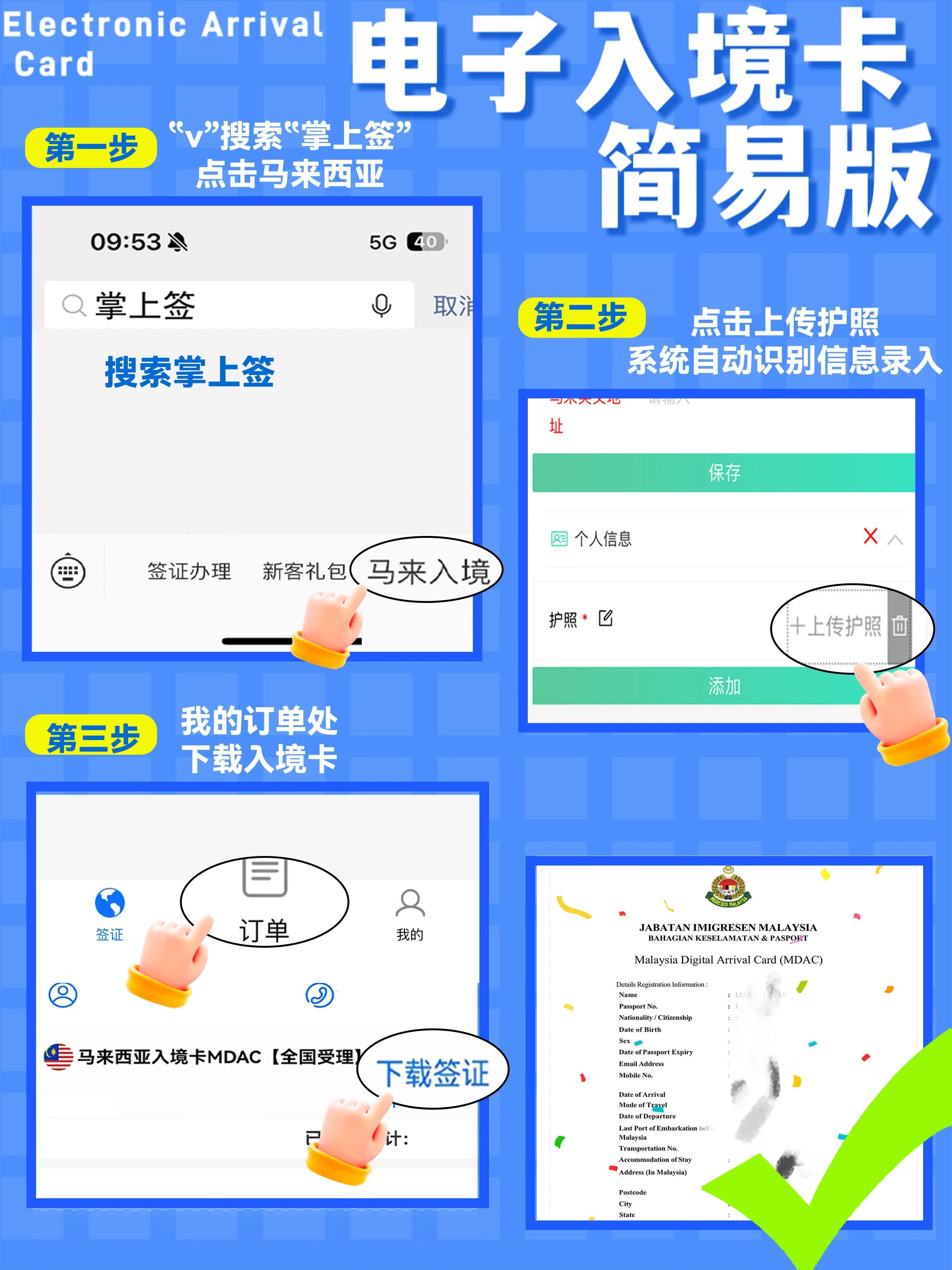 温馨提示: 马来西亚虽然免签了,但不是拿着护照就能去哦!要提前三天内填写马来西亚电子入境卡!用这个方法超快速出卡,百分百出卡!