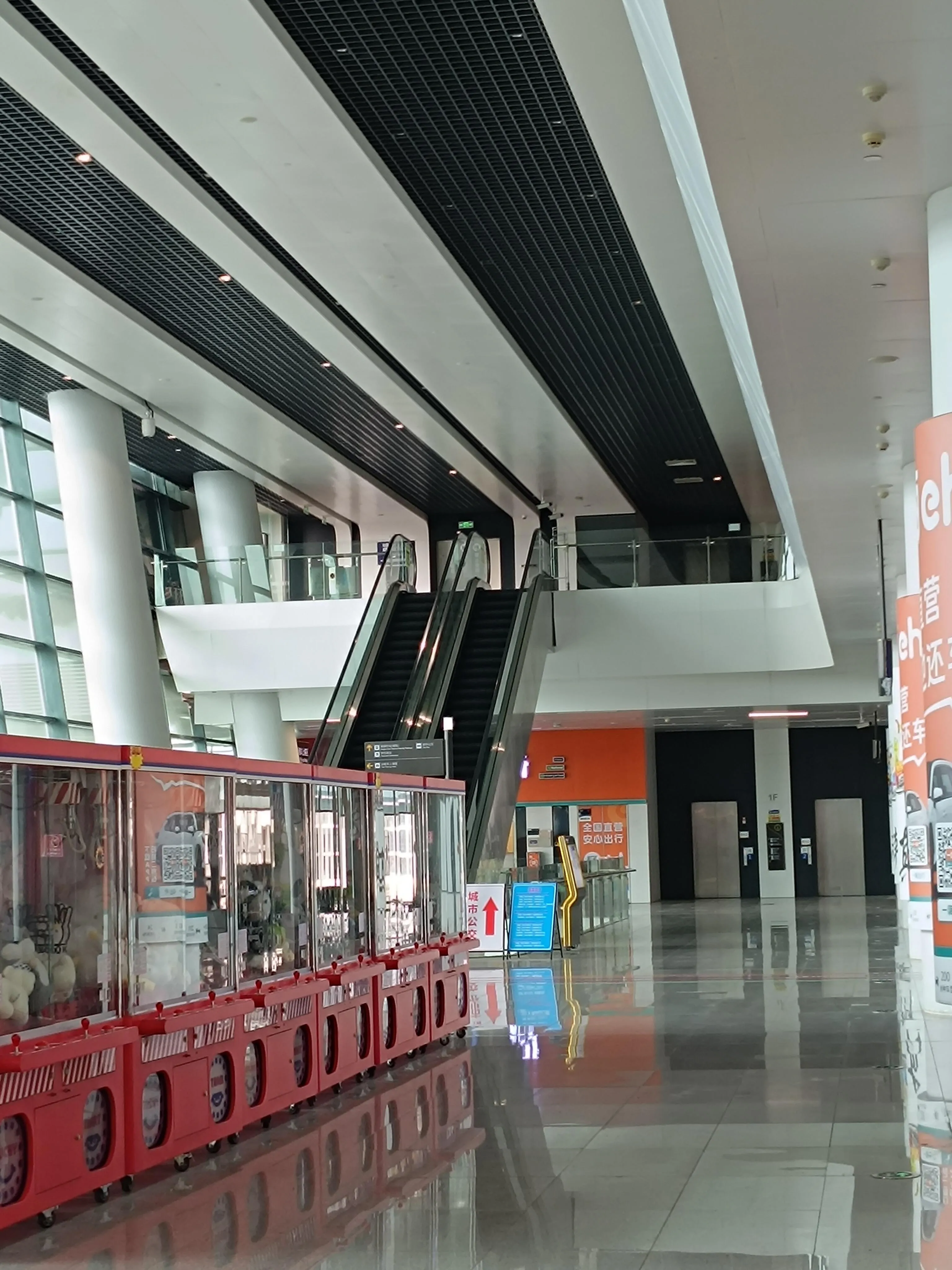 同样从高铁站大厅出发,向右上可以看到扶梯。乘扶梯上去后一路直行,不要左转。