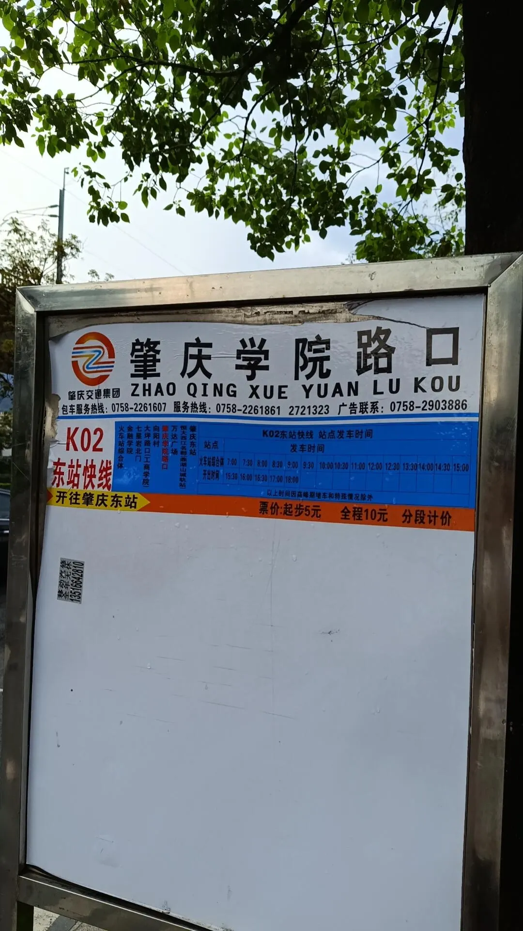 乘坐K02路公交车前往肇庆学院,票价10元。