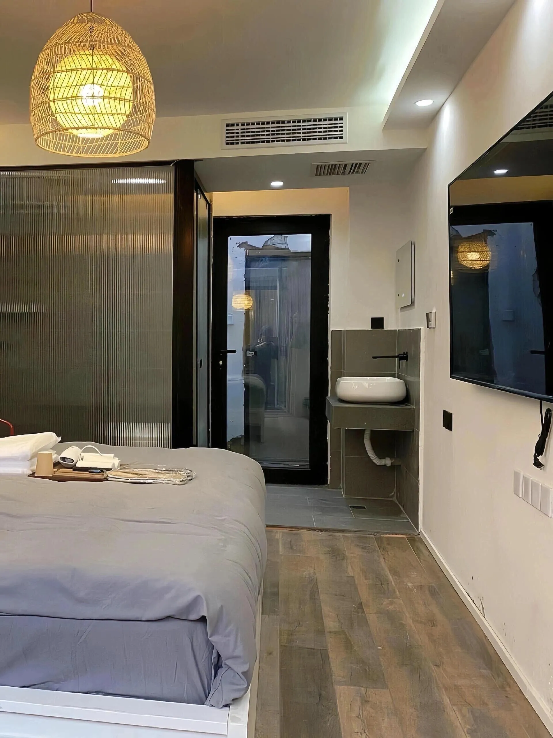 这家民宿的设施非常棒:大落地窗、私家影院(85寸高清投影)、KTV设备一应俱全。住宿体验相当不错,比酒店更能感受老北京的特色。房间里有地暖、空调、科勒卫浴,洗漱用品齐全。老板还会提供看剧会,服务真的很贴心。考虑到这个价格,真的让人感动。