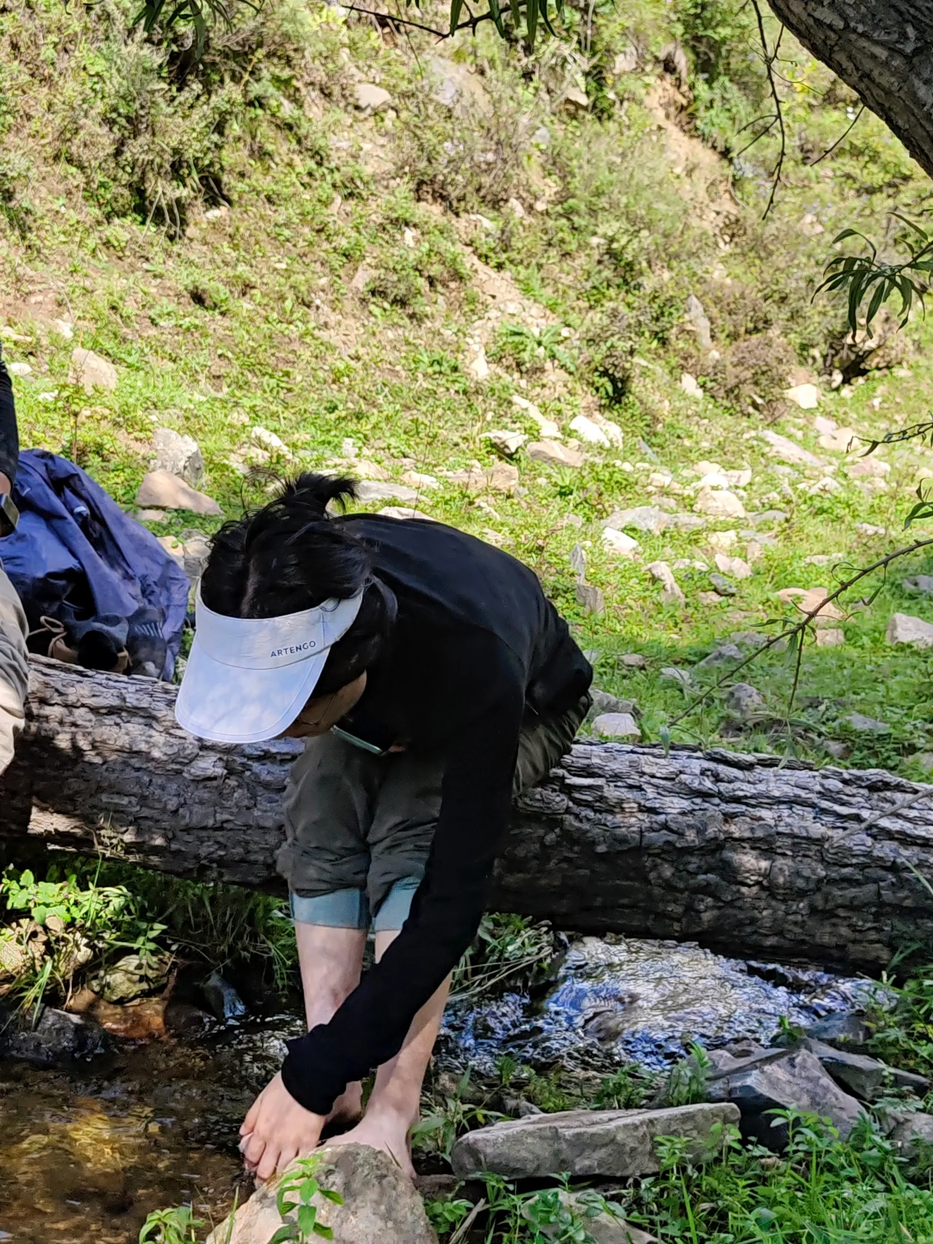 当天的徒步路线为鸿门岩-东台-护银沟-宽滩,全程约22公里。 从护银沟到宽滩可选择乘车,每人20元 。早上七点从鸿门岩出发,大约下午四点到达护银沟。沿途多为高山草甸,风景秀丽。第一天的路程难度不大,以缓坡为主,最后的下坡略显疲累。护银沟有一条小溪,许多徒步者在此休息泡脚。