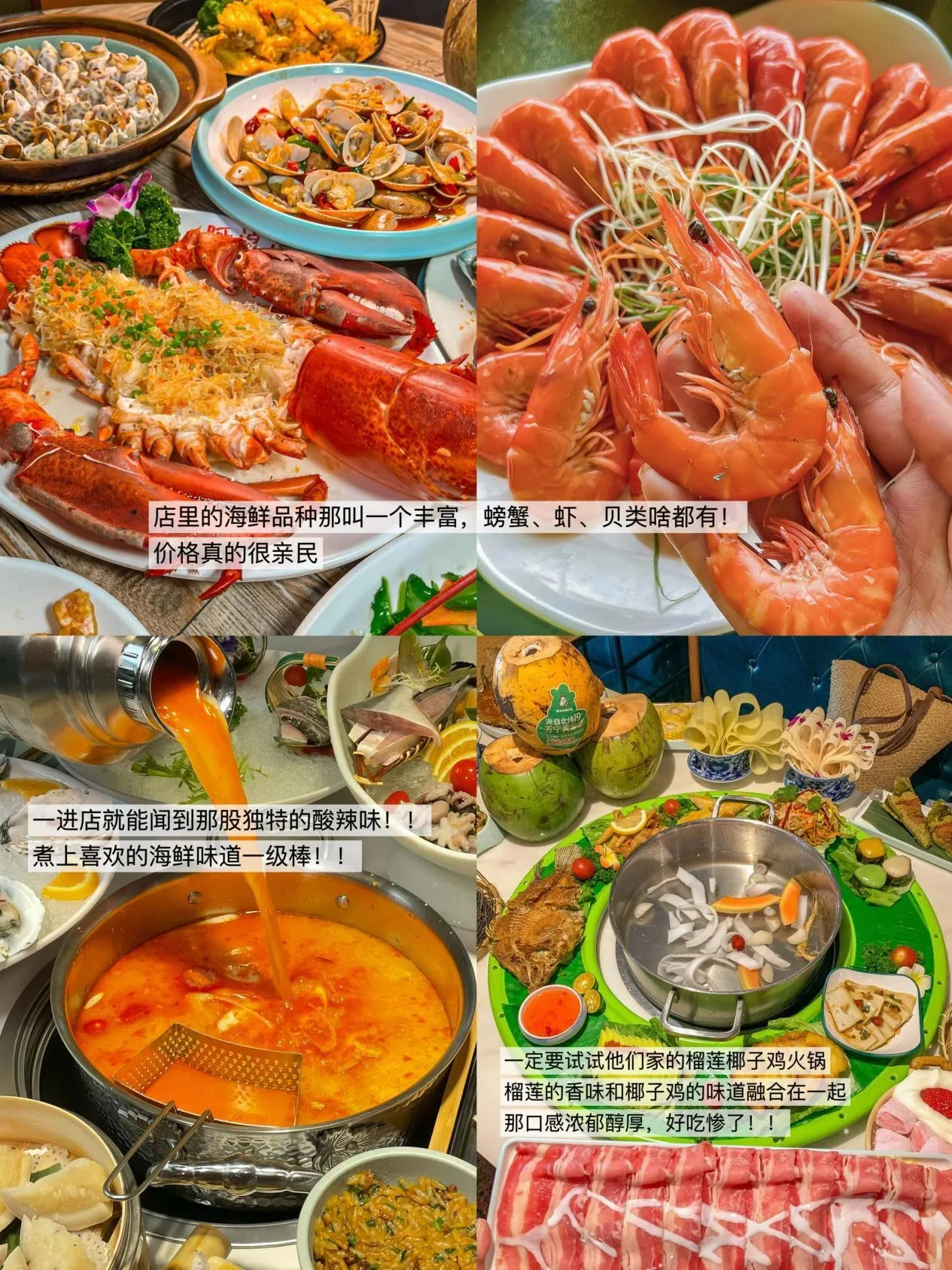 岛汤糟粕醋·海南酸汤火锅:一进店就能闻到独特的酸辣味,配上喜欢的海鲜,味道一级棒。