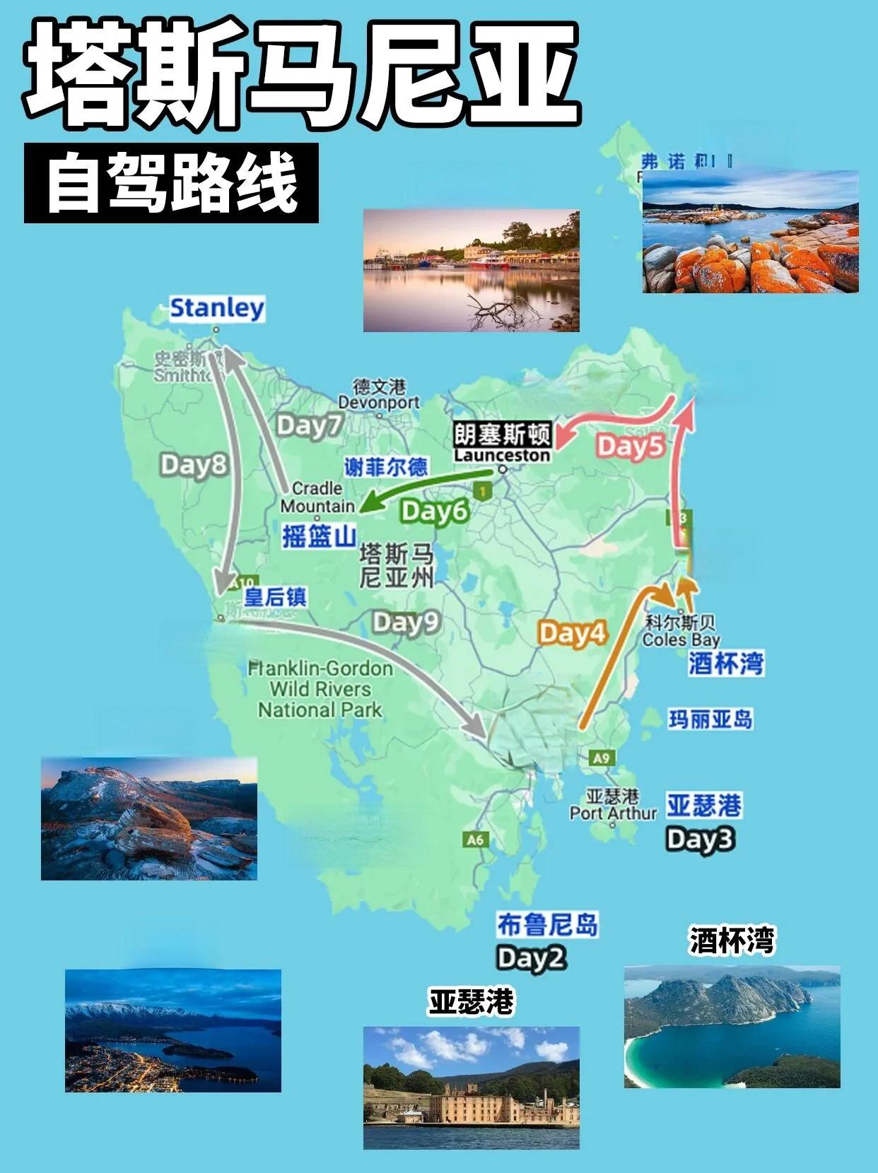 这条路线涵盖了塔斯马尼亚的主要景点,让游客能够充分领略这个心形岛屿的自然之美和人文魅力。