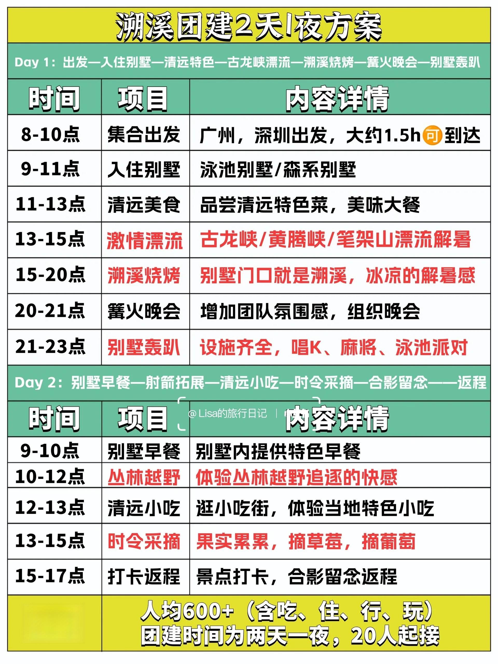 9月至10月是今年清远漂流的最后两个月 ,想要体验古龙峡、黄腾峡漂流或溯溪解暑的游客们,现在是开始计划的好时机。以下是一份精心准备的人均600+元的两天一夜团建攻略。