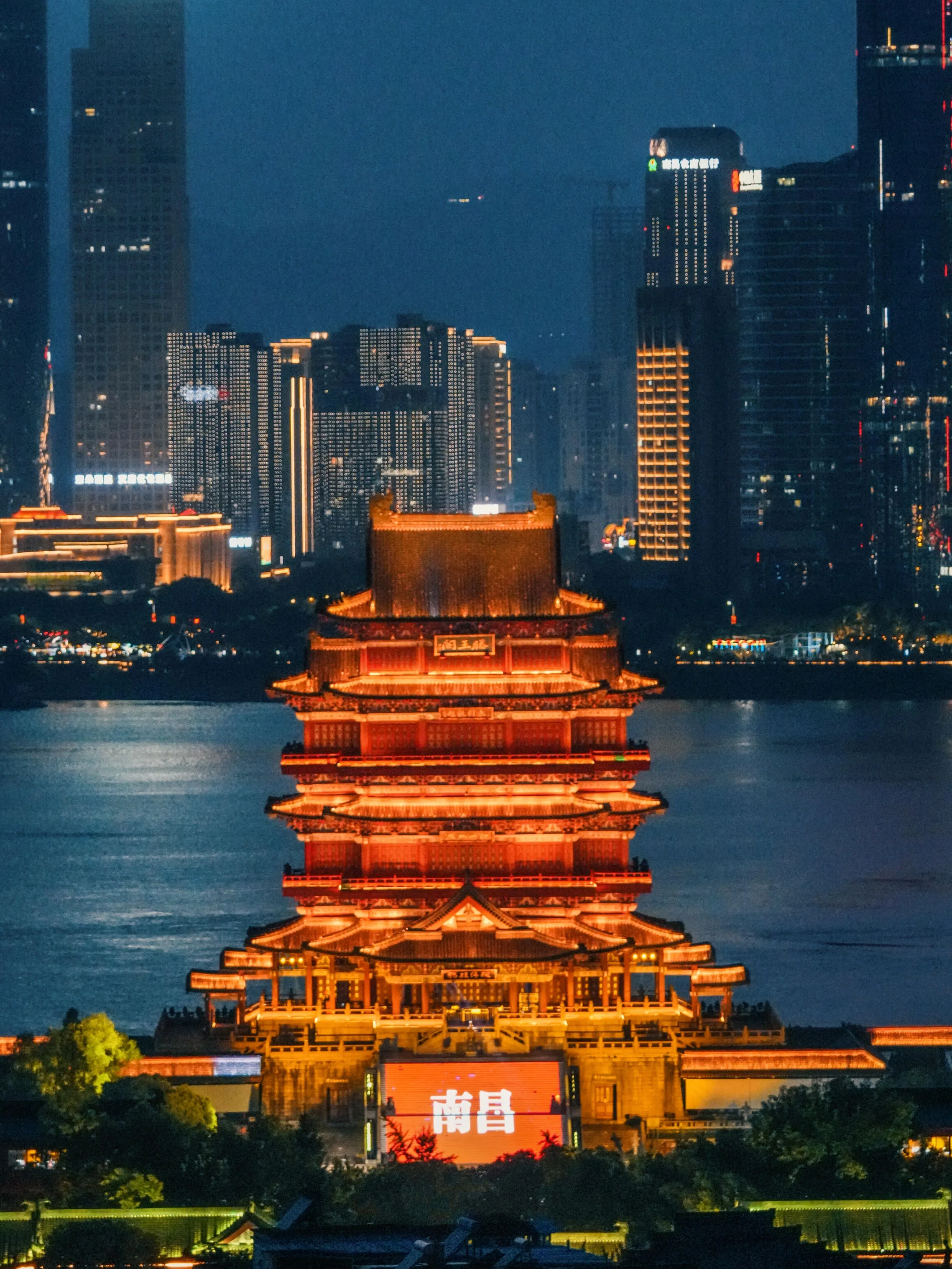 时代广场的公寓楼是拍摄滕王阁和南昌城市全景的绝佳位置。建议乘电梯上到15楼以上,不需要长焦镜头,中焦段即可。傍晚来此,可以欣赏到美丽的日落和夜景。