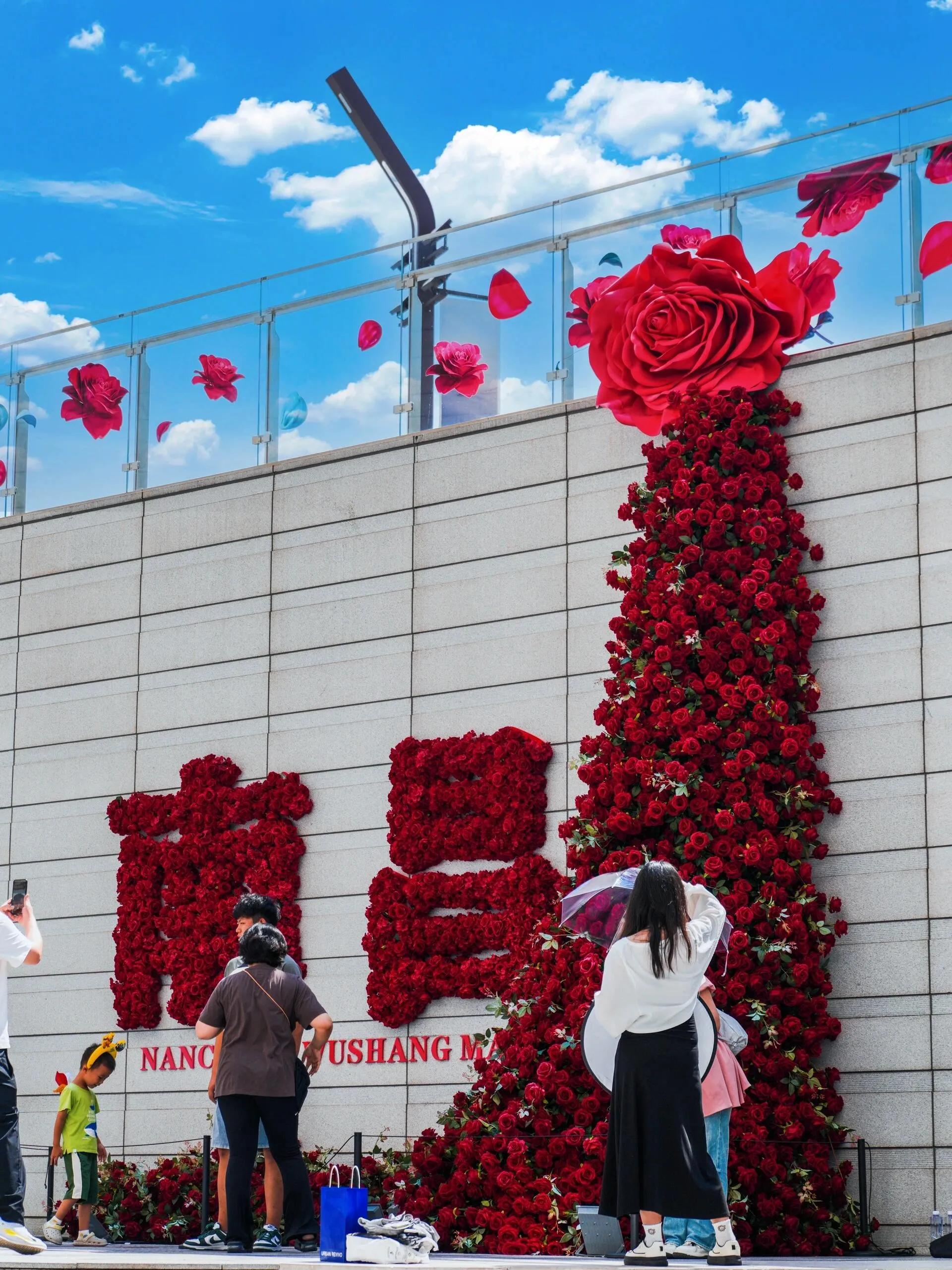 在八一广场一侧的武商mall,有一面浪漫的玫瑰花墙,非常适合拍照。可以从地铁八一广场站7号口出站。