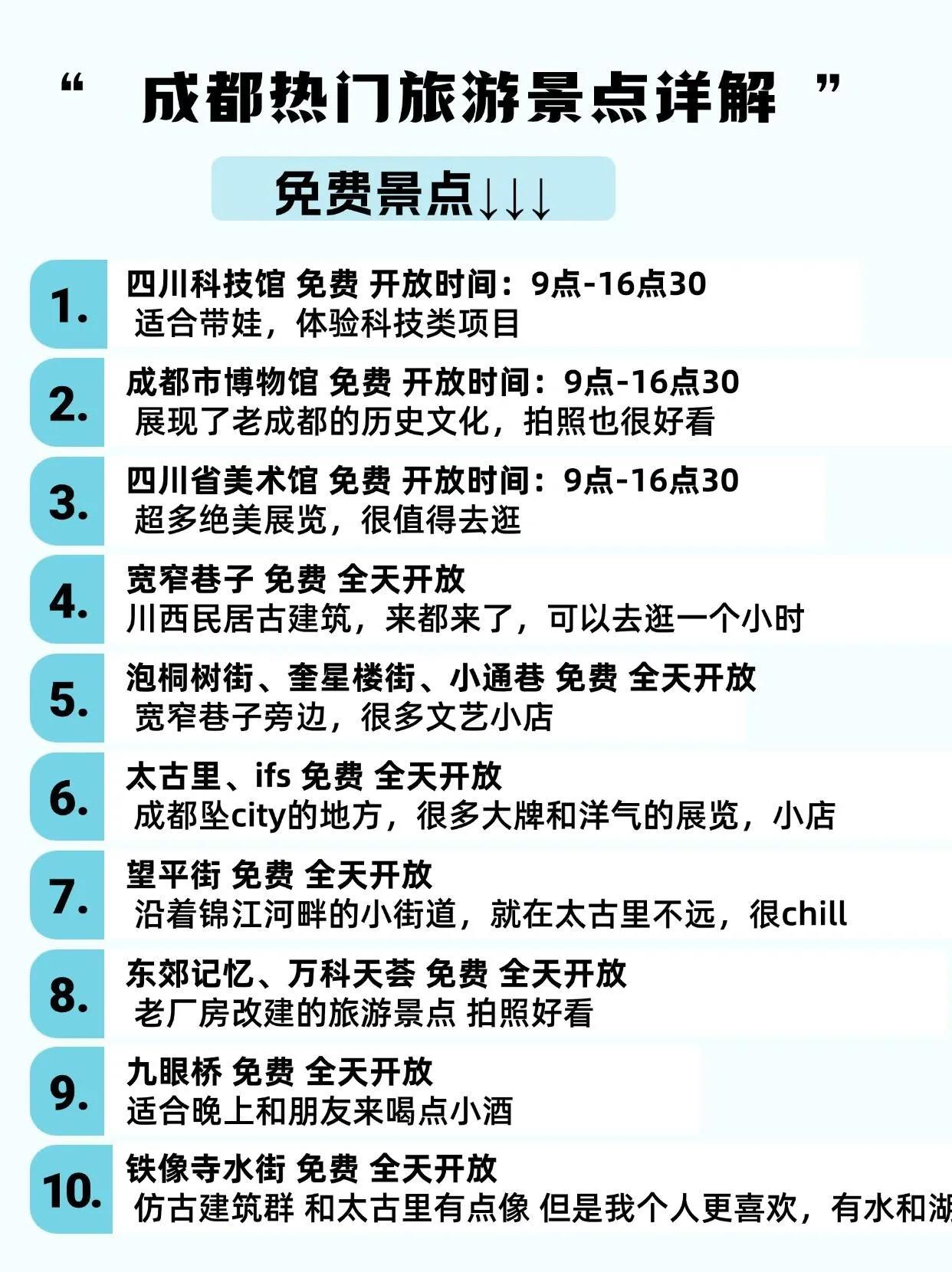 无论你是想感受城市的现代气息,还是体验传统文化,或者单纯享受美食,成都都能满足你的需求。希望这份攻略能帮助你更好地探索这座充满魅力的城市!
