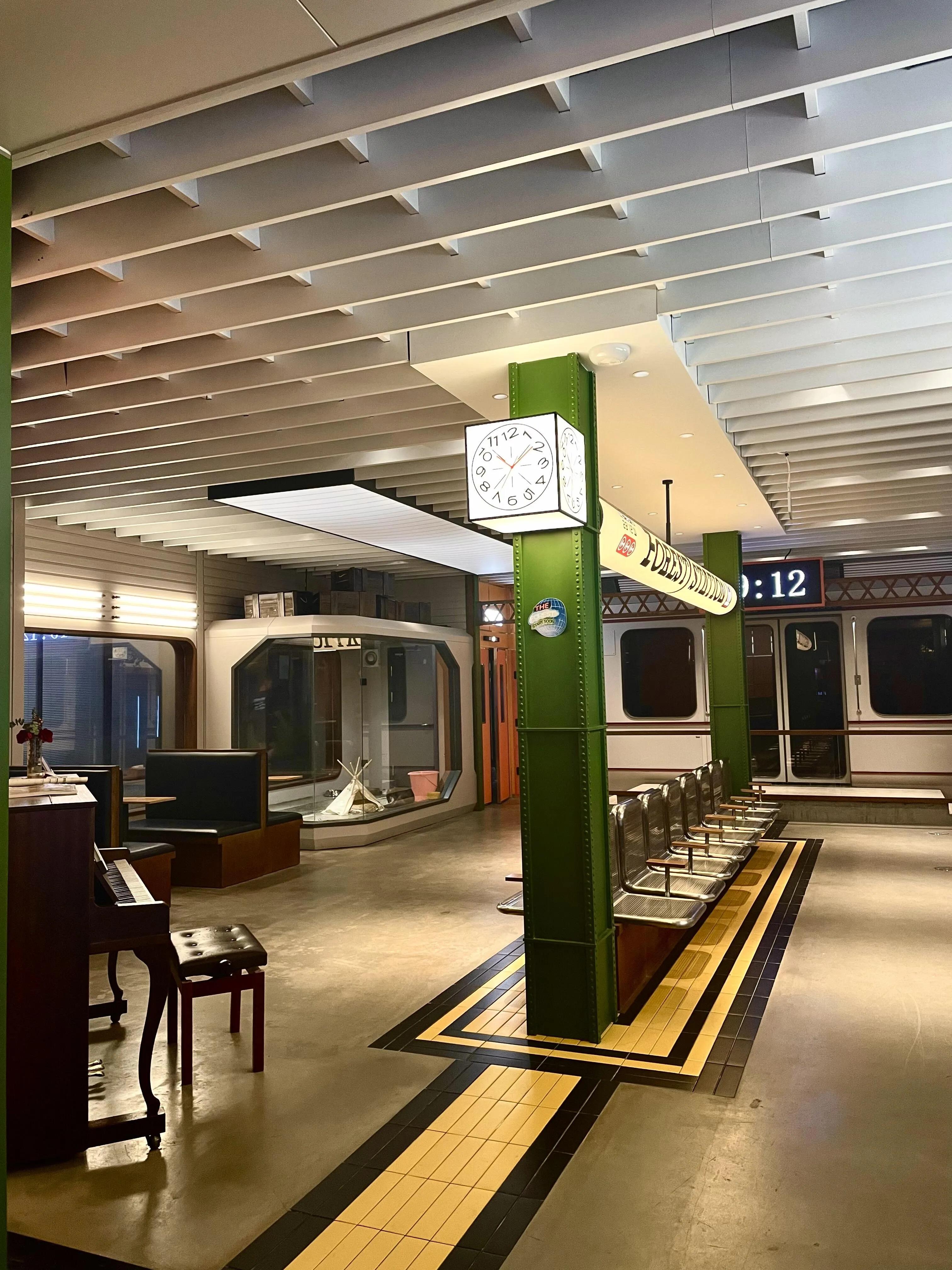 店门前的独特魅力就能吸引眼球。进门后,小巧的前厅风格与主厅截然不同,别具一格。步入大厅,更是令人眼前一亮!这里宛如现代候车室,既沉稳又充满活力。橙色与绿色的搭配既时尚又温馨。整个空间设计舒适,每个角落都彰显高品质和用心。