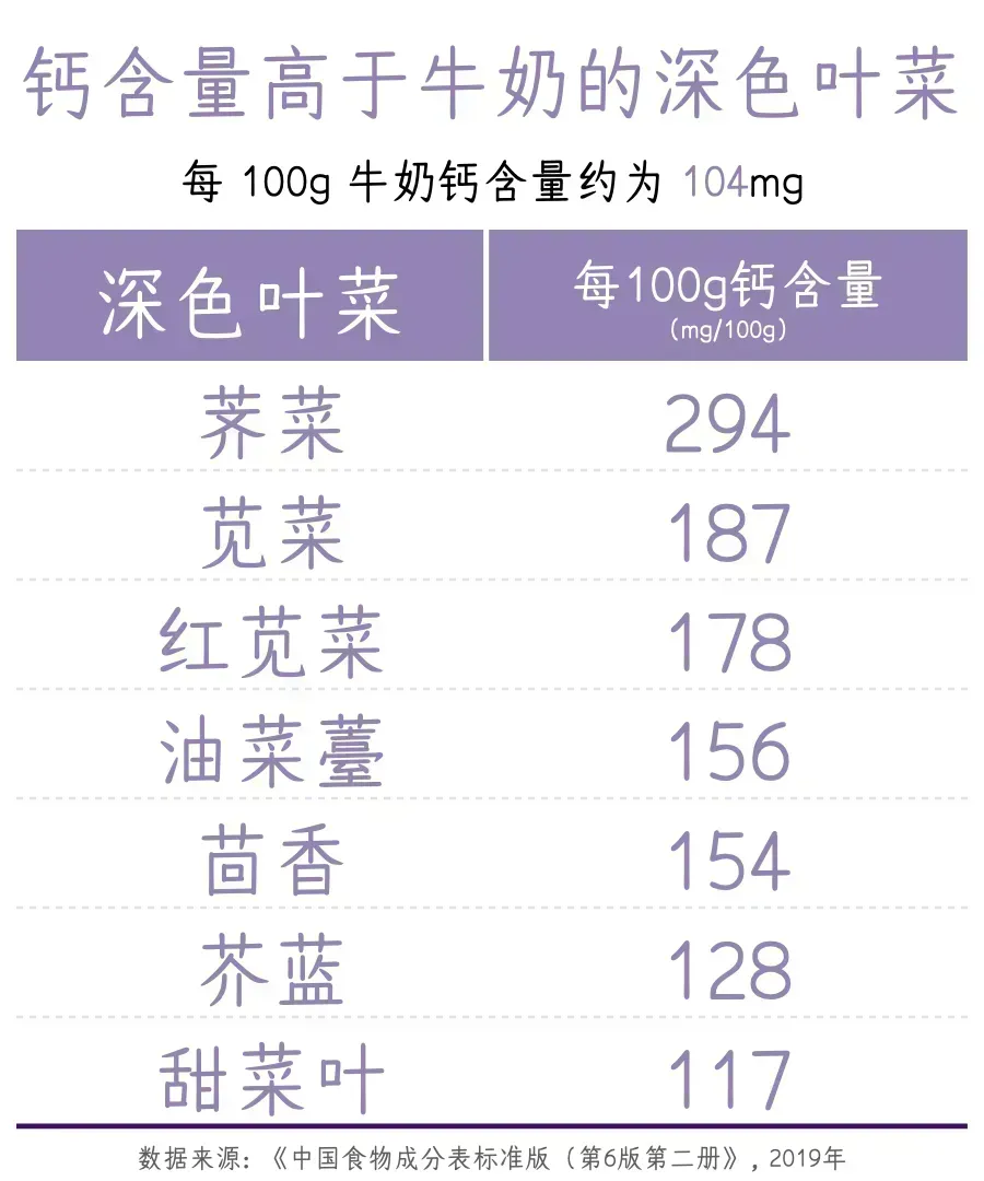 考虑到大多数国人日常饮用奶量不足,绿叶蔬菜在补钙方面的价值依旧值得肯定。