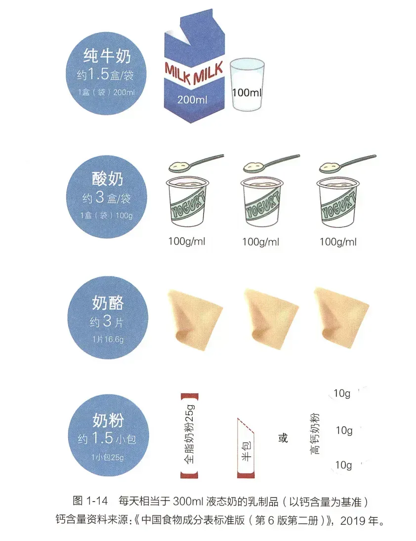 在从奶制品中获取300~500mg钙后,还需从其他食物中得到剩余的钙。