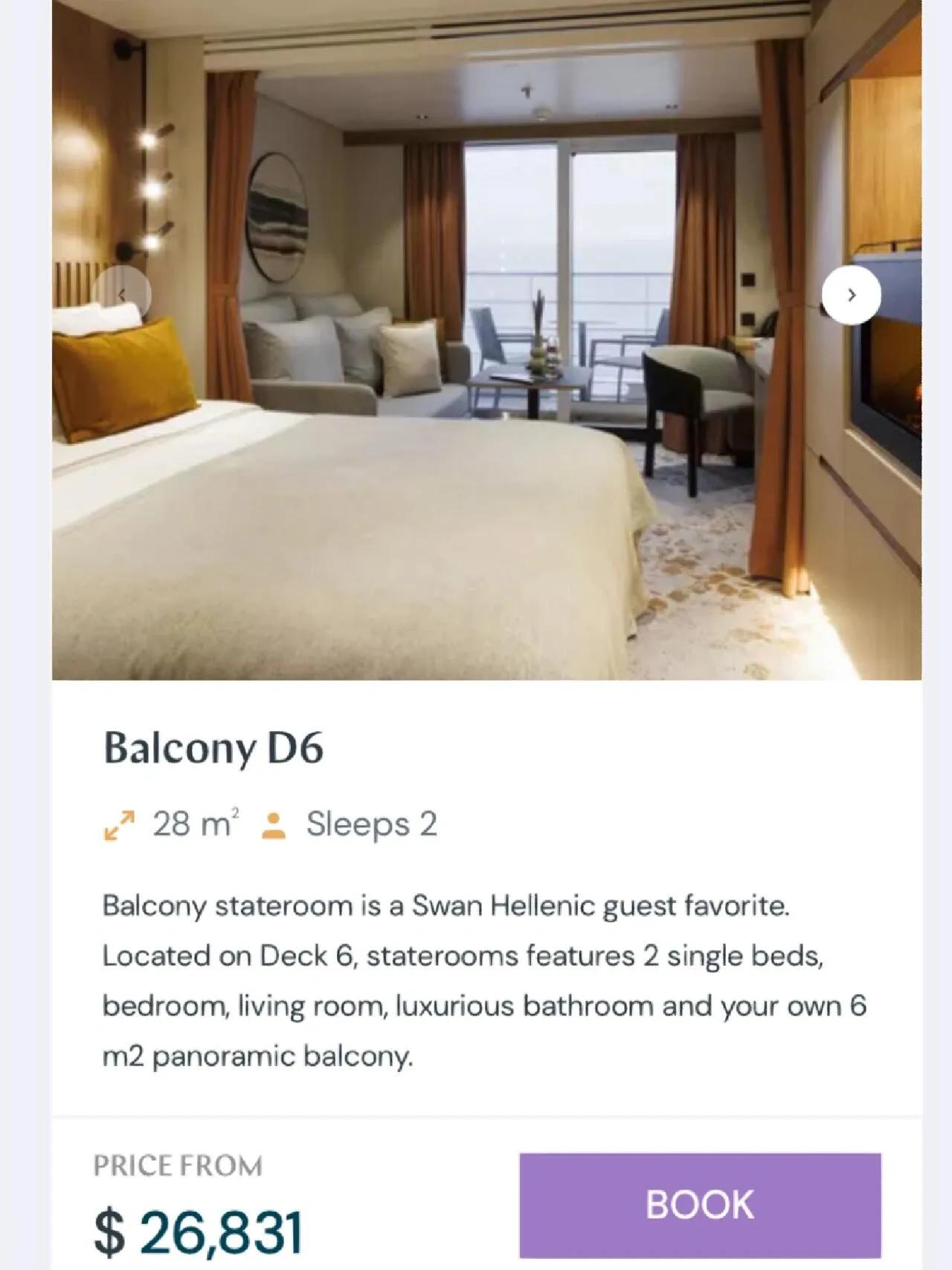 房型价格通常为:阳台套房 > 阳台房 > 舷窗房 > 多人间。豪华船一般不提供多人间。