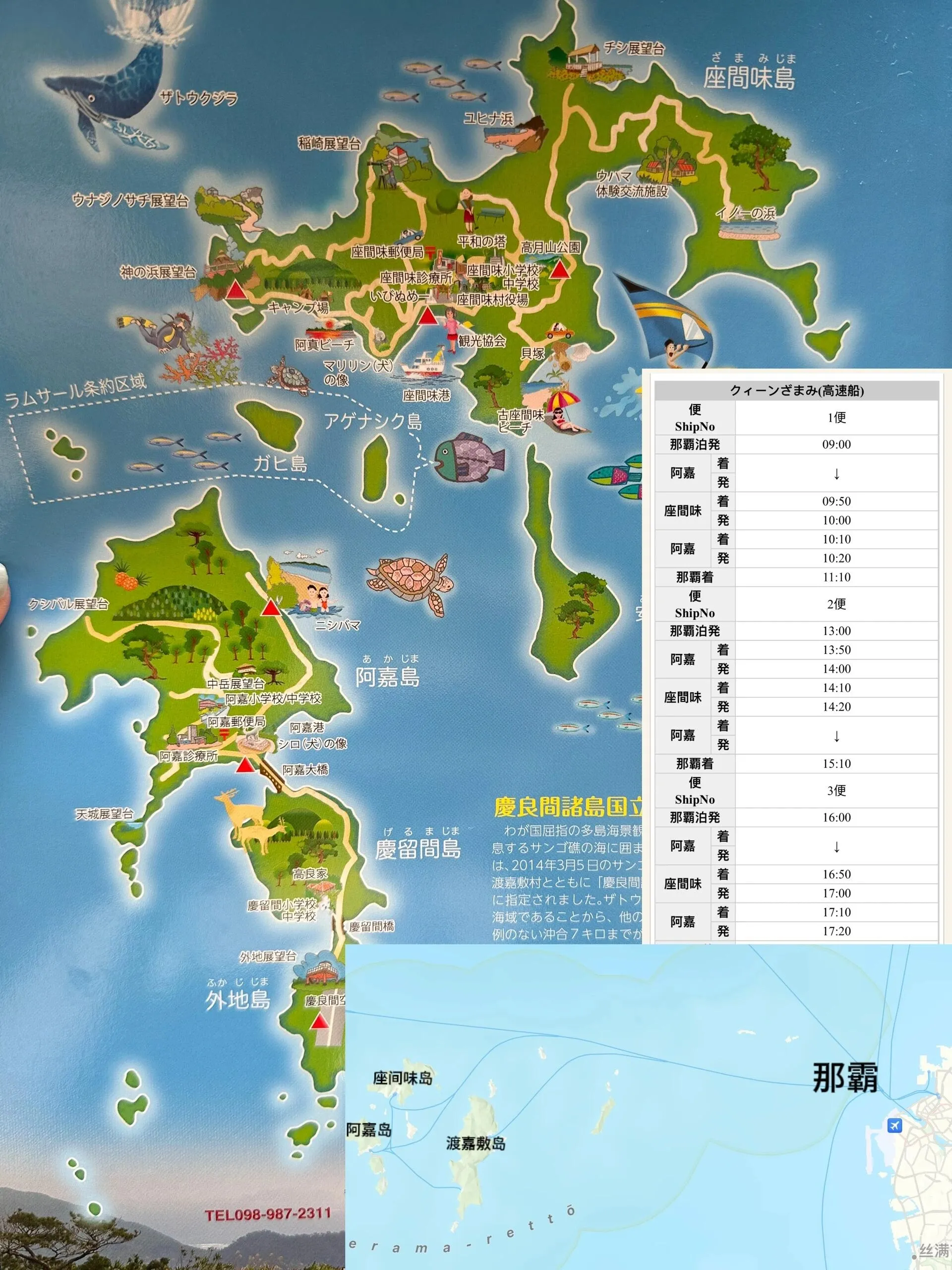 实际玩的时候太晒太累,在座间味岛码头和工作人员沟通换了3点回程的船票(如果有空位现场可以改票)