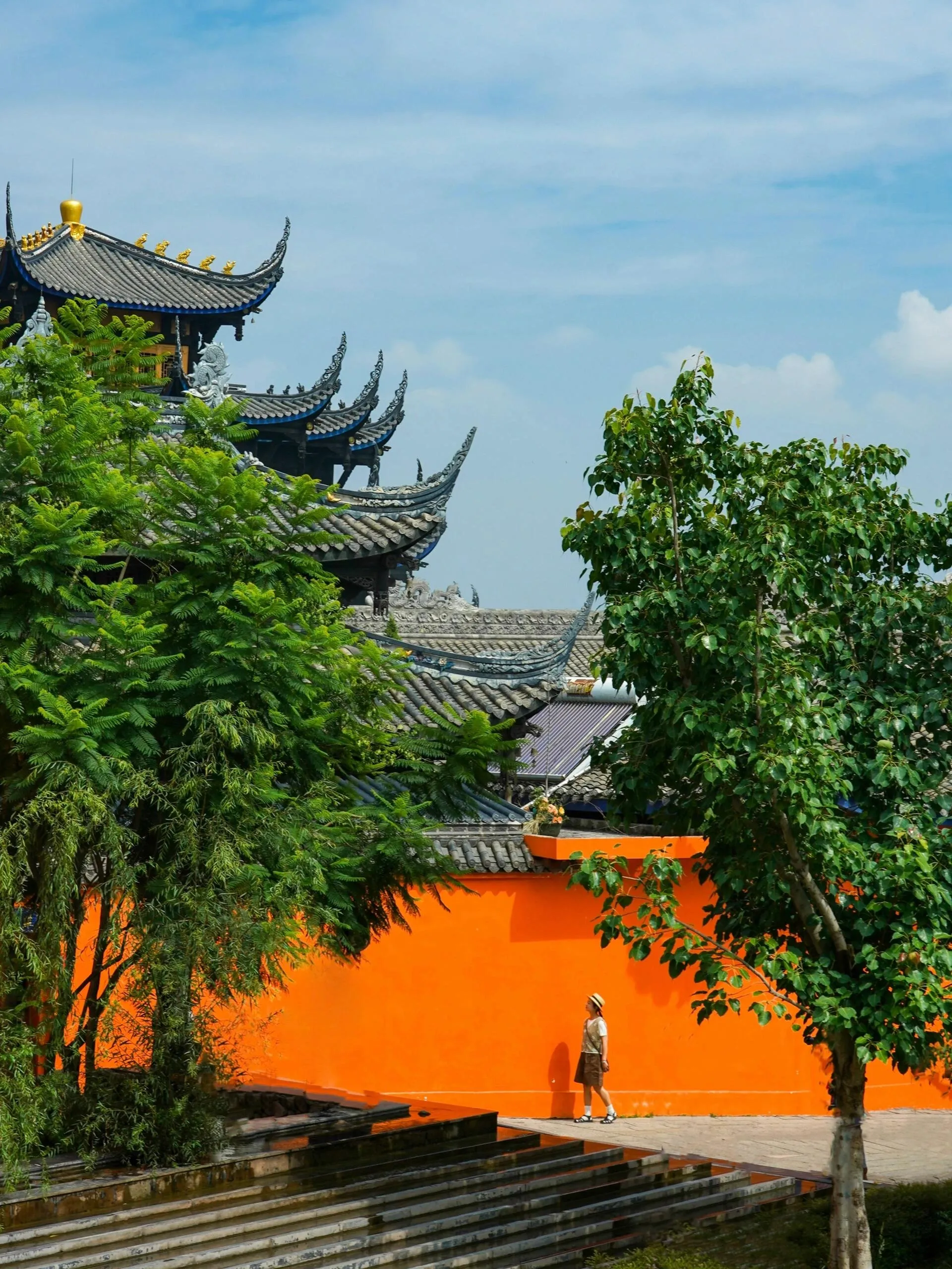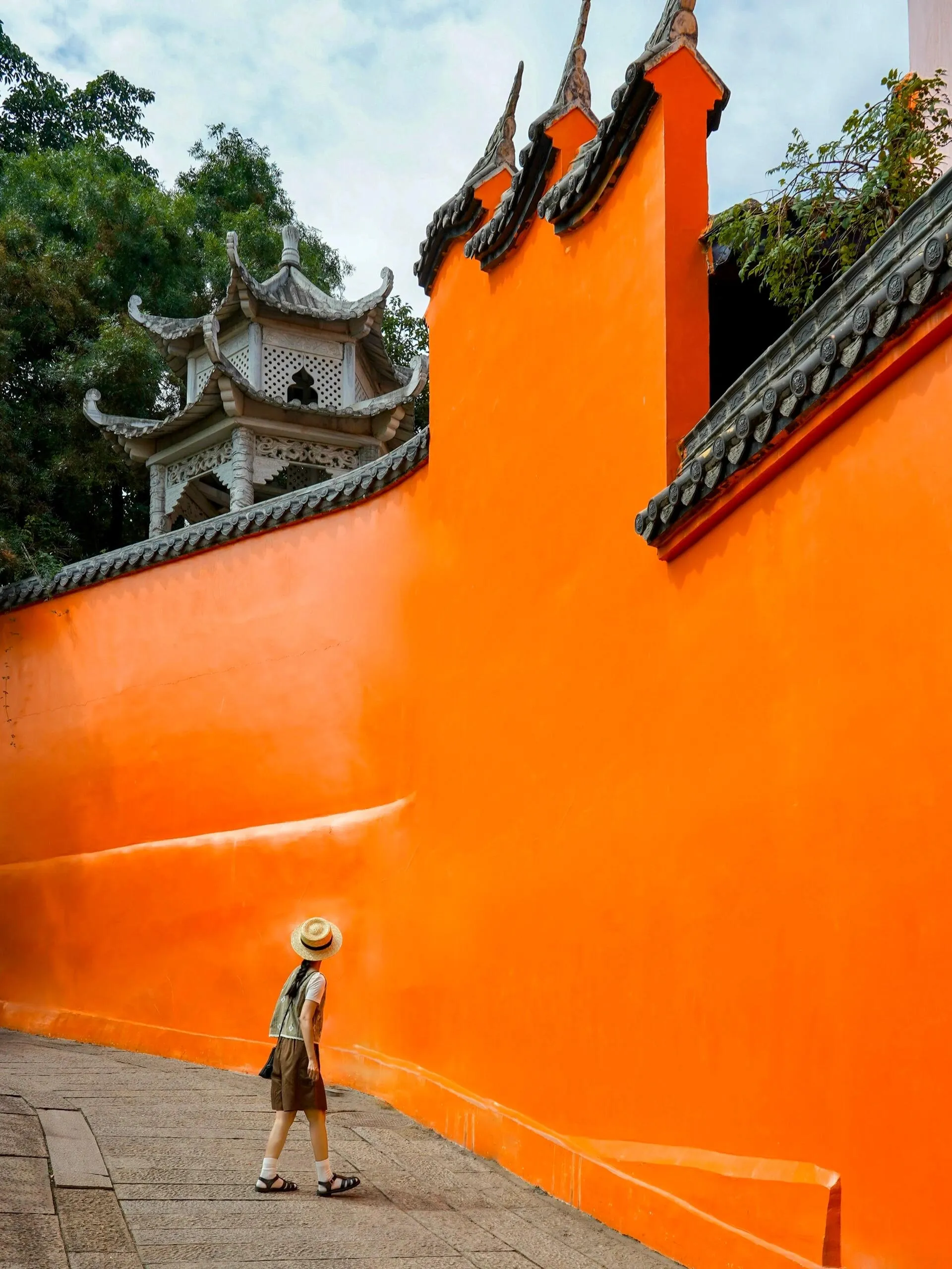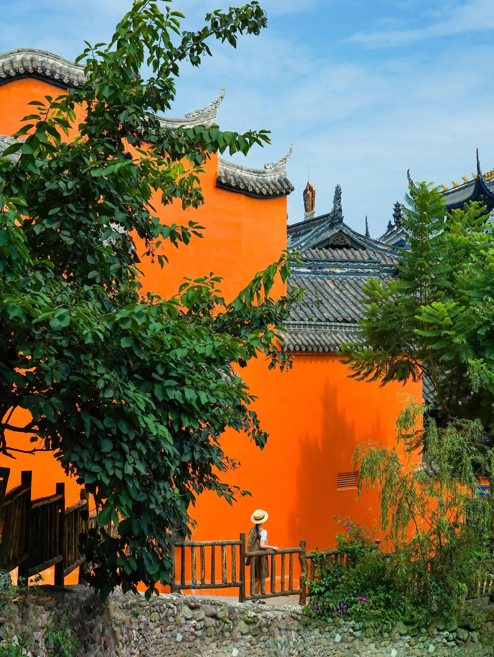 大石板村是成都周边一处美丽又富有漫画感的古村落。 这里背靠螺髻山,面向邛海,整个村落被涂成橘色 , 加上飞檐角楼的灵鹰寺庙,构成了一幅美丽而治愈的画面。