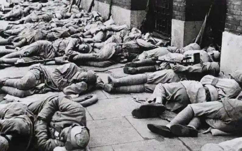 当人民解放军于5月25日入驻上海之际,当夜战士们就在马路边安歇。