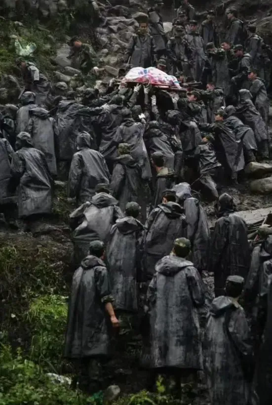 我们还记得,距离现在不久,25年前,当听到“全部上堤”的号令时,年轻的战士们毫不犹豫地投身洪水,用自己的身体抵挡灾难,通宵达旦地筑堤修坝,那位将军流着泪说:“我们的战士是最好的……”15年前,电视里政委对战士们说:“同志们,党和人民考验我们的时候到了”,随后15名勇士勇敢地从高空飞跃而下……