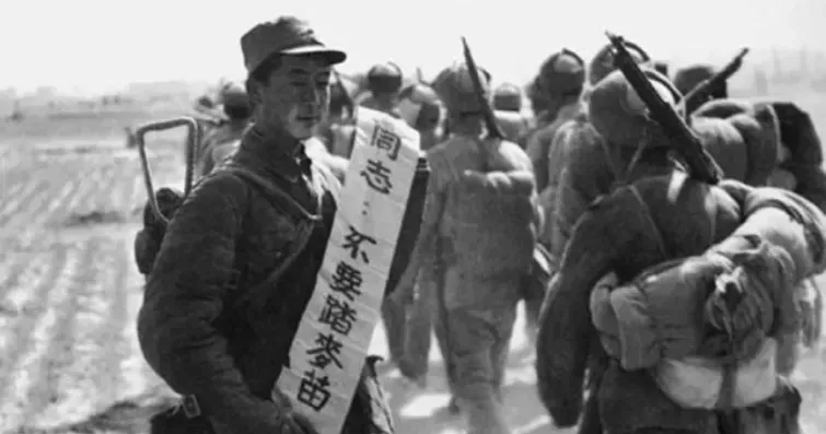 当年苏联记者拍摄到解放军行军的情形,那些英勇的战士每背后都有一个识字板,上面画着通俗易懂的漫画和标语,最显眼的一条便是“说话要和气”。