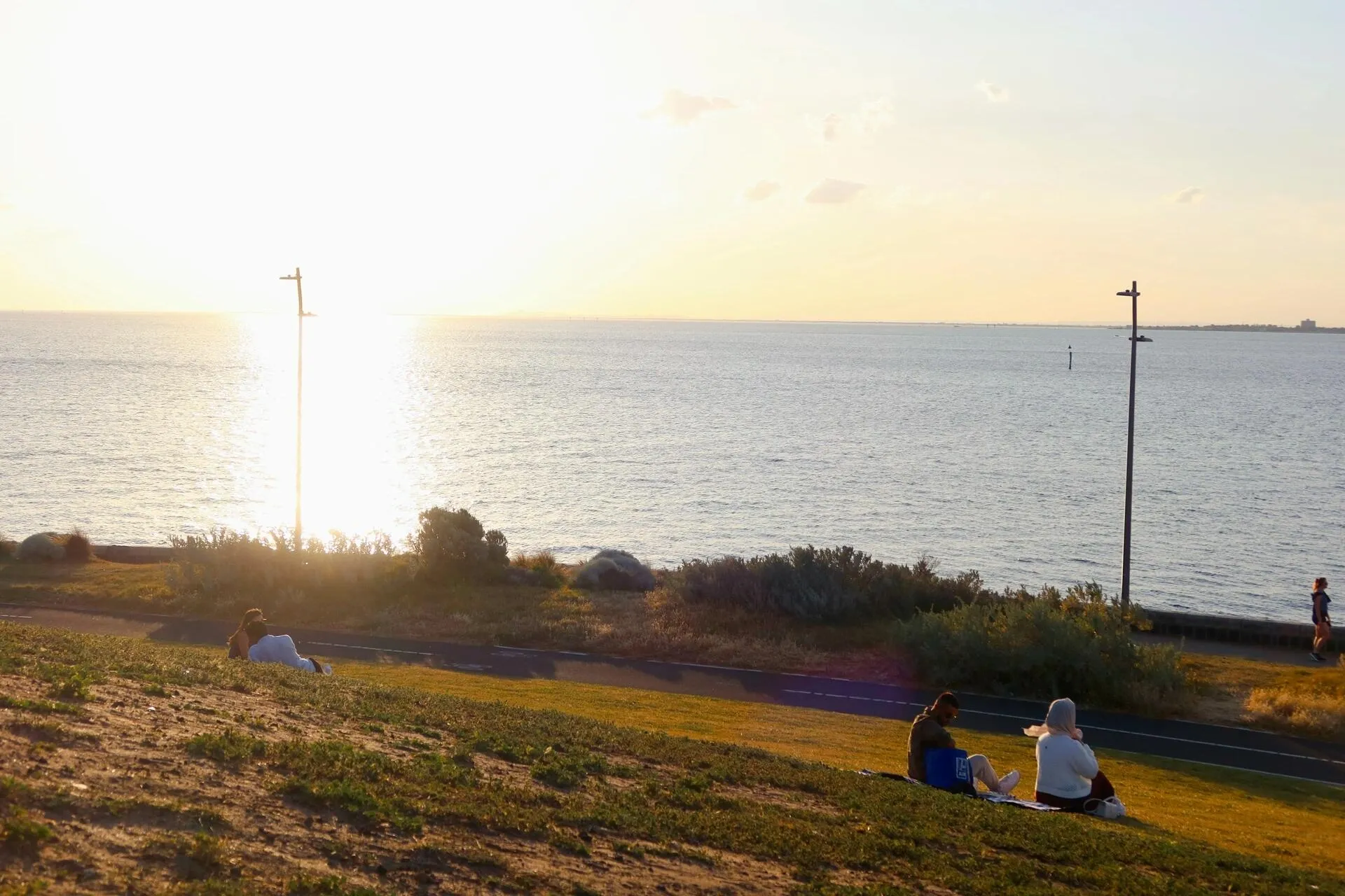 这是我在墨尔本最喜欢看海边日落的地方,没有之一!从市区坐公车大概四十分钟就能到达。日落时分,在7-11买一杯可乐冰沙,坐在草地上看着远处的城市发呆,感觉特别治愈。