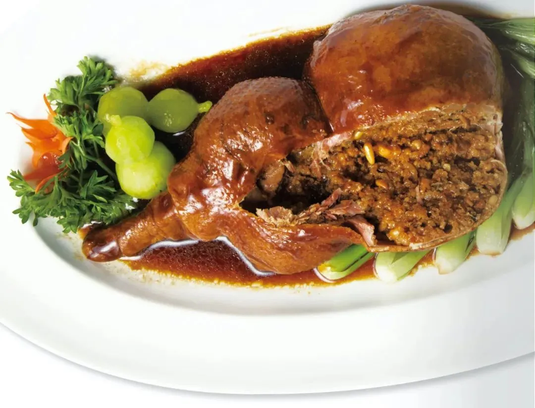 扬州有许多类似的菜,比如脱骨鱼也要将鱼骨全部剔除,保留完整的鱼皮,填满馅料;脱骨鸡也是类似。