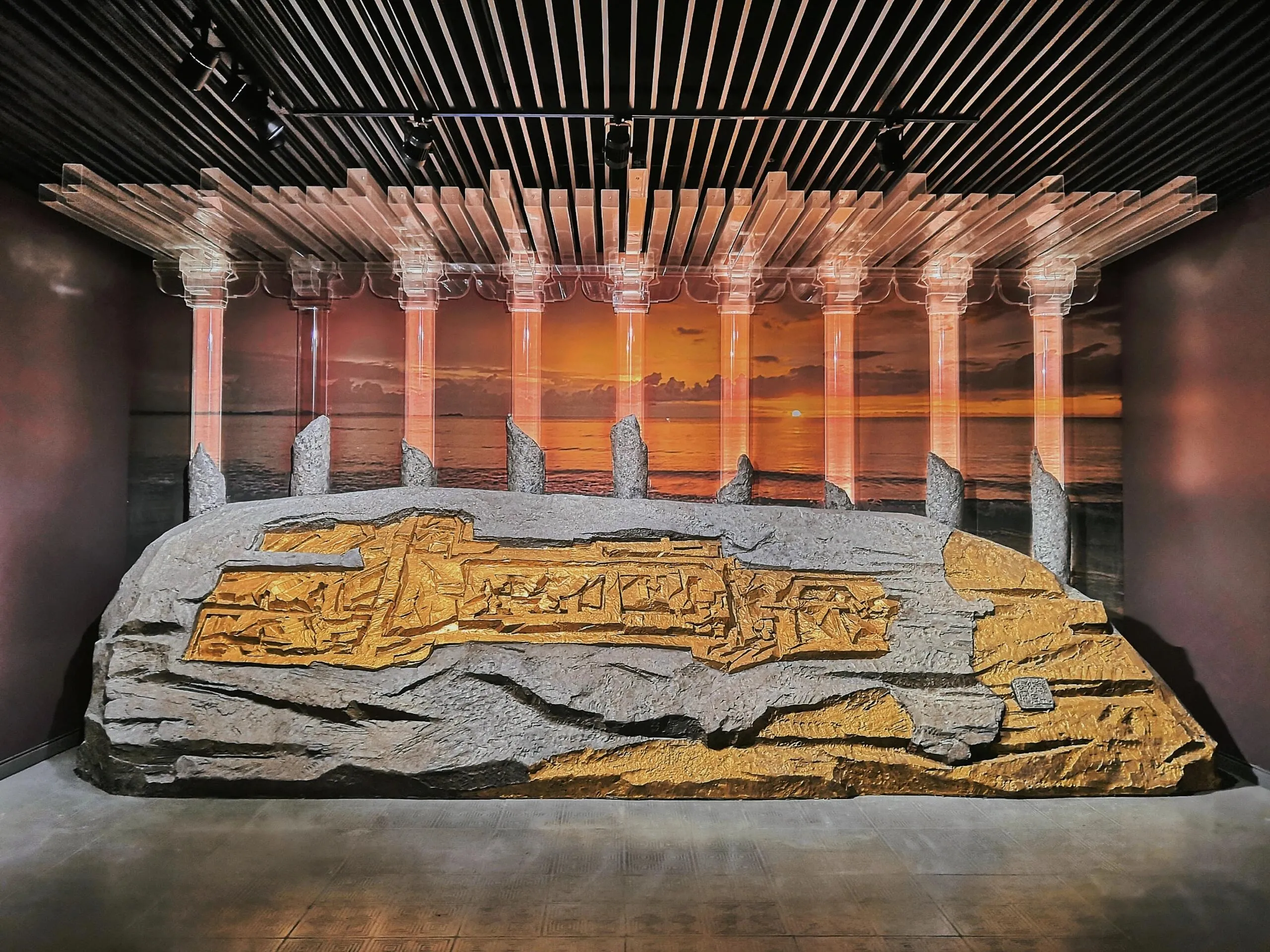 负一层介绍了遗址的发现和采掘过程,以及秦始皇五次出巡的历史。这里还展示了曾到达秦皇岛(北戴河)行宫驻跸的几位帝王的相关信息,让人对这个地方的历史地位有了更深入的认识。