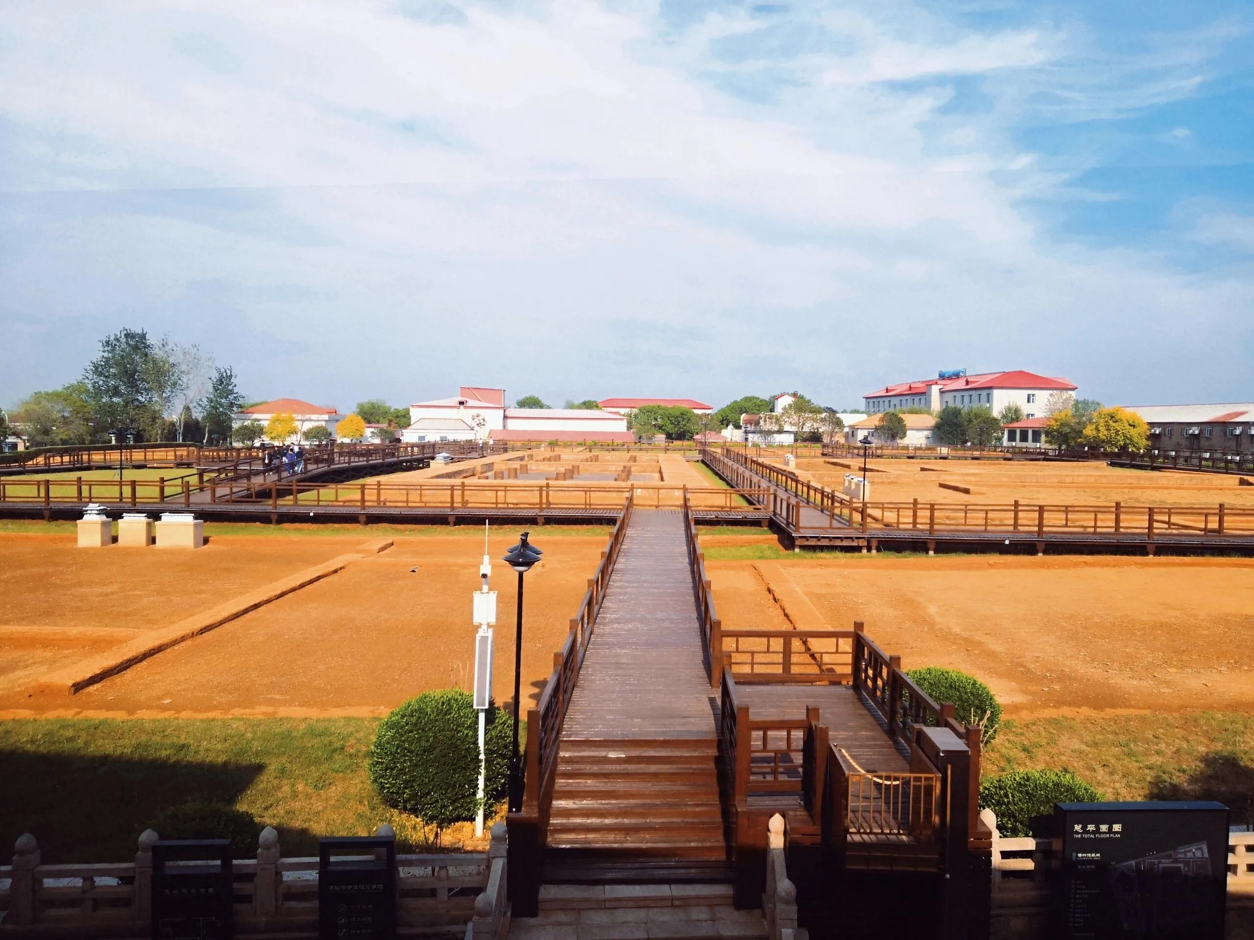 二层是活动室和办公区,可以在这里稍作休息。之后可以出门到达后院,在那里参观真正的行宫遗址。先在馆内了解展览的介绍,再出来看到原行宫的遗址,这种体验比复原遗址更让人震撼。看惯了各大仿古景点“崭新的古城”、“新修的古街”,这样朴素的讲述和原始的遗址更让人心动,仿佛能够透过一块块残垣看到当时辉煌的行宫和强盛的大秦。