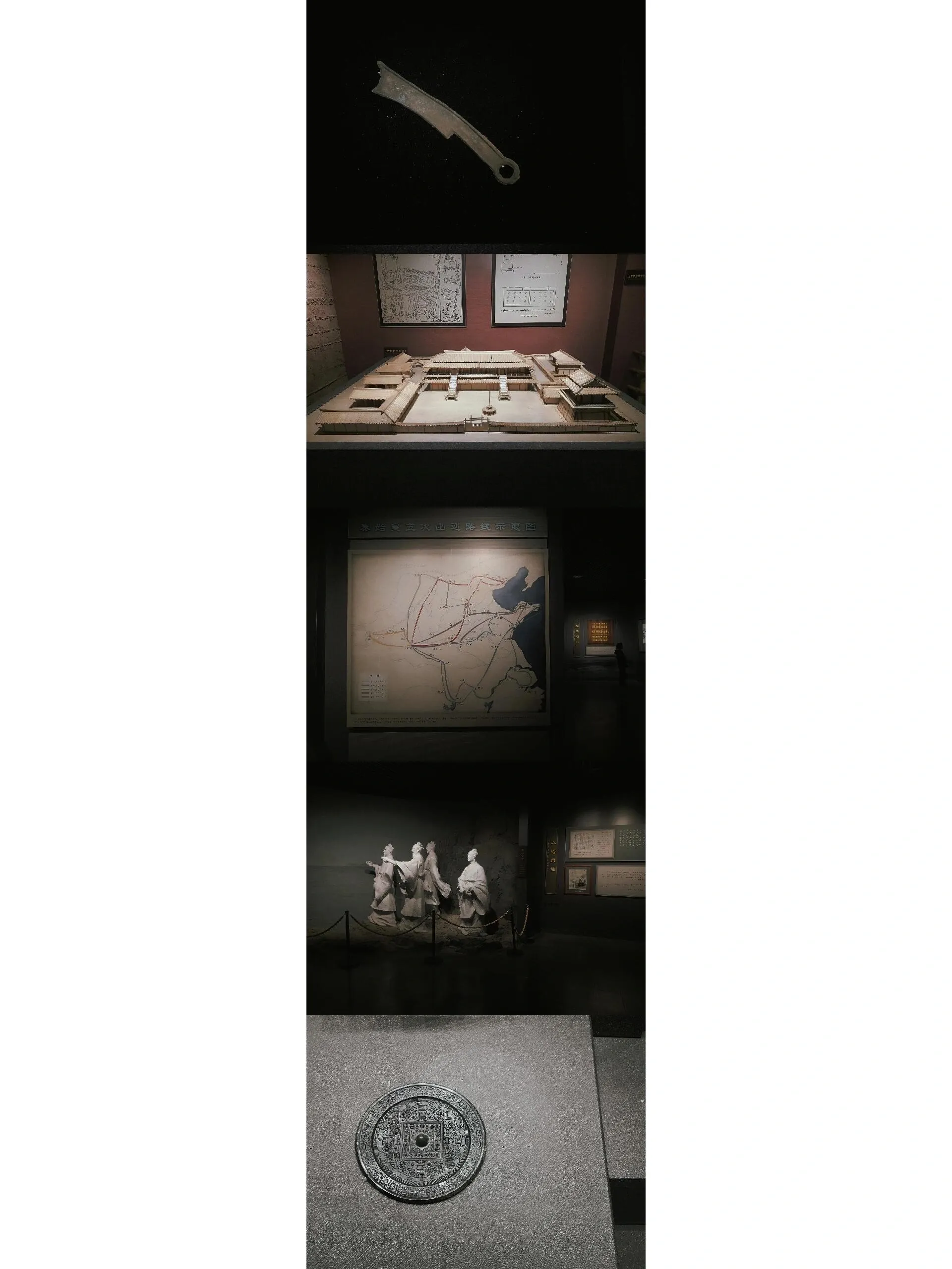 博物馆一层主要展示秦行宫遗址及出土文物的常设展览。展览以秦国的兴衰为主线,从秦国作为周朝附属国,到商鞅变法,再到一统六国称始皇帝、二世而亡,展示了不同时期的代表性文物。虽然数量不多,但主要以酒器、钱币和武器为主,让人对秦朝的历史有了更直观的了解。