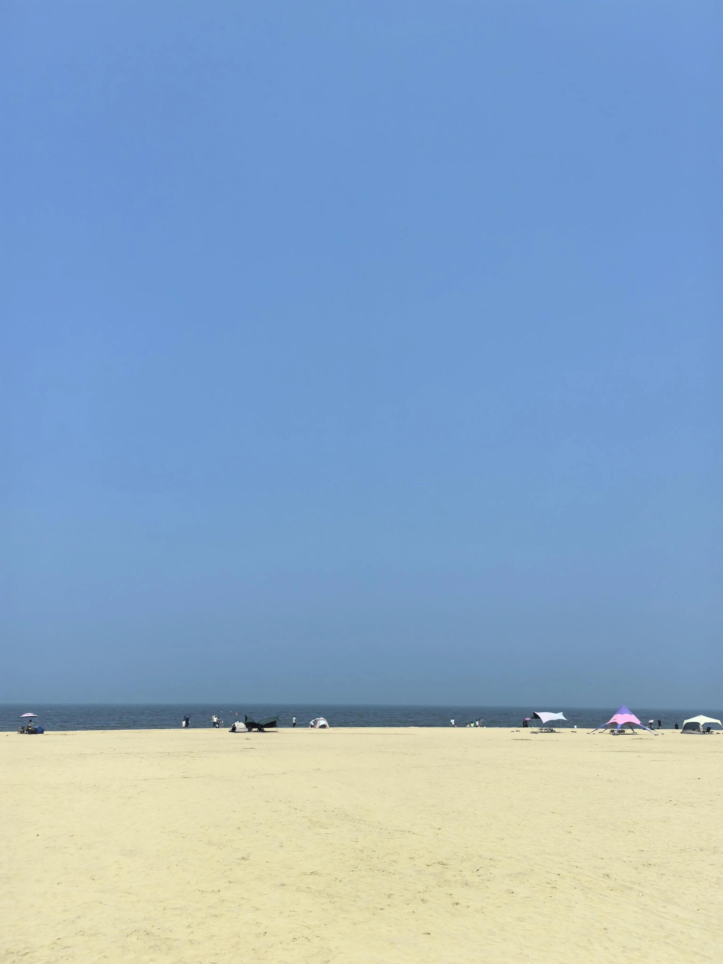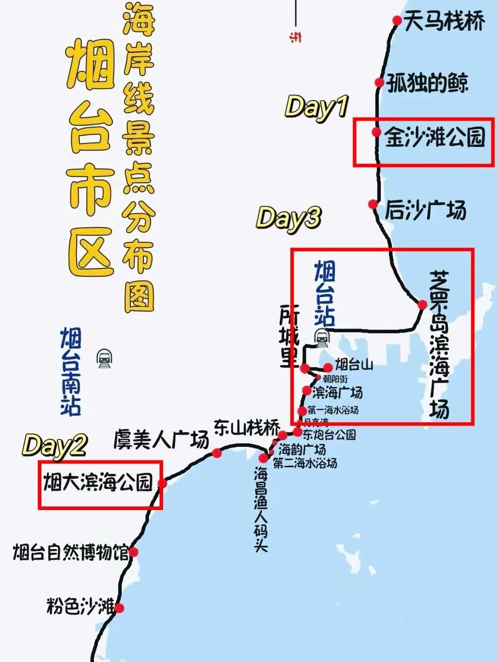 行程安排从金沙滩开始,自驾往烟台大学方向。第一天游览了后沙广场、金沙滩和夹河大桥。金沙滩沙质细腻,退潮时无浒苔,公共遮阳设施齐全。夹河大桥是赶海的好去处,特别是桥底下和石头底下藏有不少螃蟹。