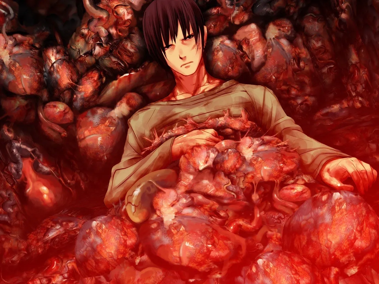 《沙耶之歌》最引人注目的莫过于其独特的视觉风格。游戏通过扭曲、血肉模糊的画面,将玩家带入一个令人不安的世界。男主角匂坂郁纪在经历严重车祸后,眼中所见的一切都变成了由血肉和黏液构成的噩梦。这种视觉冲击不仅展现了主角的心理状态,也为整个故事蒙上了一层阴森恐怖的氛围。