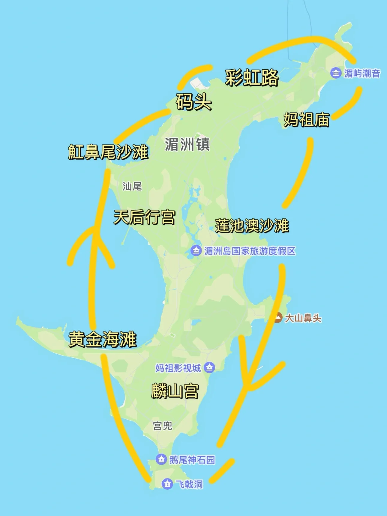 第一天:湄屿潮音 - 彩虹路 - 妈祖祖庙 - 天妃故里 - 莲池澳沙滩 - 夜市 - 民宿休息