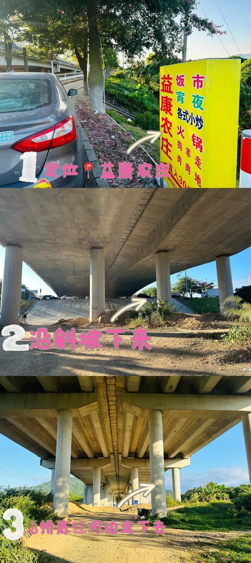 地点位于广州从化麻村流溪河,可以导航到广州从化益康农庄。值得一提的是,这里是免费的,停车也很方便,可以直接停在路边。到达后,按照指示牌就能轻松找到河边。