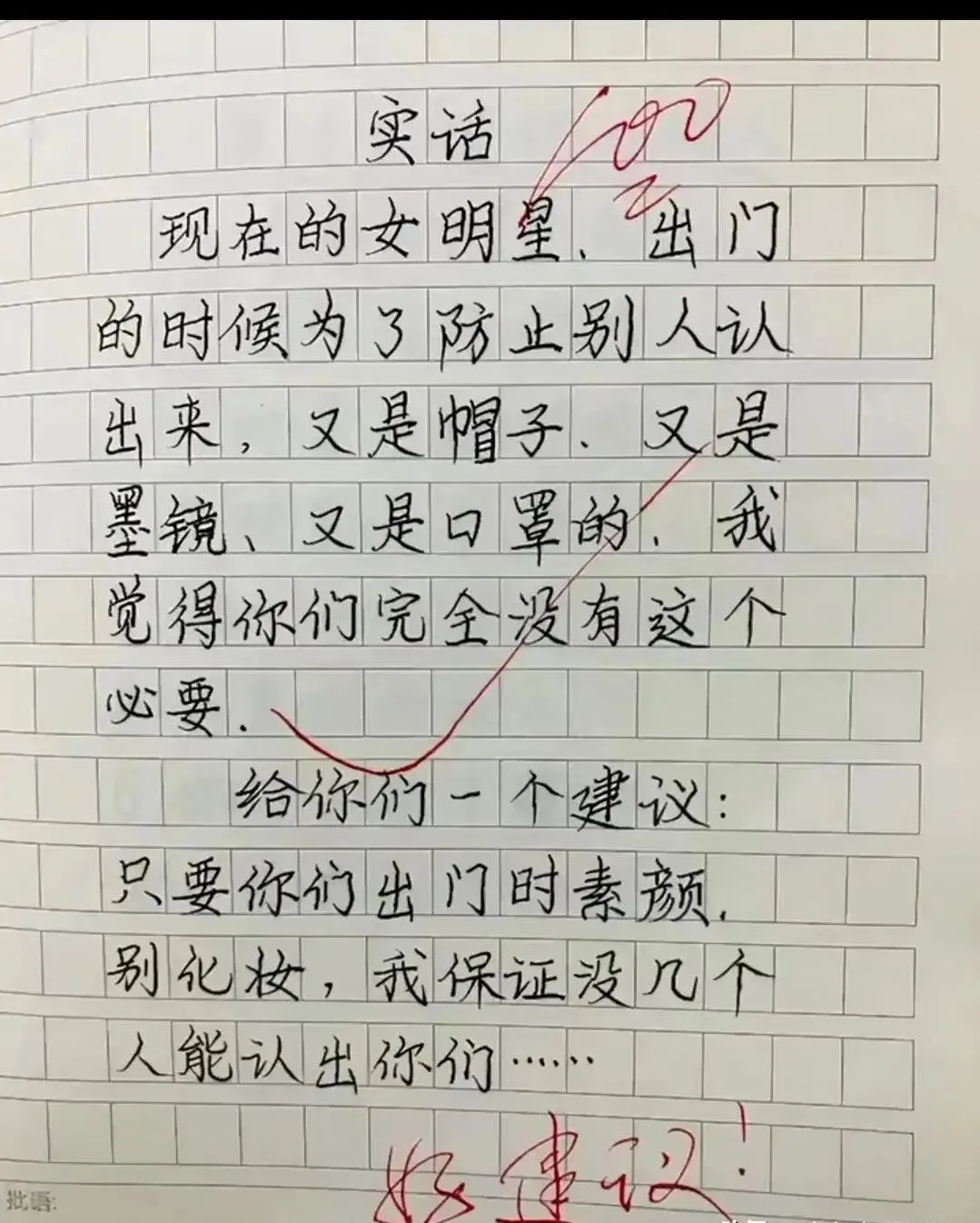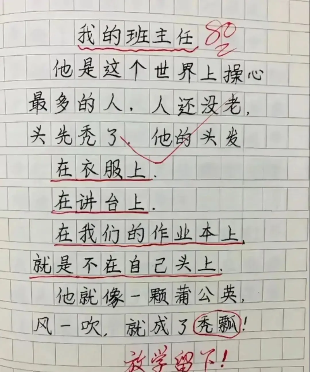 老师看到这篇作文后,忍不住笑了出来。
