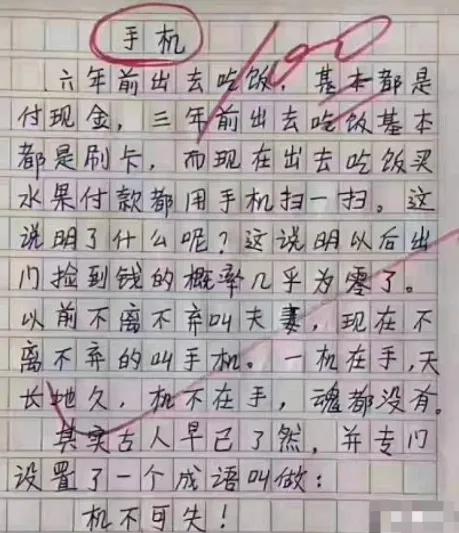 看到这名小学生对“手机”和“机不可失”的理解,小编也不禁佩服古人的智慧,似乎真有冥冥中的天意!佩服他的神奇脑洞!