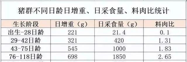 猪的料肉比会随着体重的变化而不同。