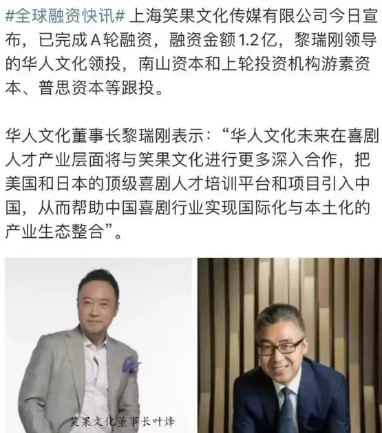 华人文化的创始人黎瑞刚,号称“传媒教父”或“中国的默克多”,他投资的项目不仅包括笑果,还涵盖了华尔街见闻、财新传媒等知名平台。