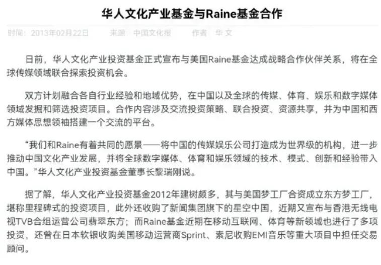 华人文化随后声明称与笑果不相关,且与Raine基金毫无瓜葛,但可惜没有确凿证据支持这一说法,目前仍旧可以看到它在笑果文化的投资列表中,而与Raine基金的战略合作信息则在几年前的多家媒体报道中提到过。