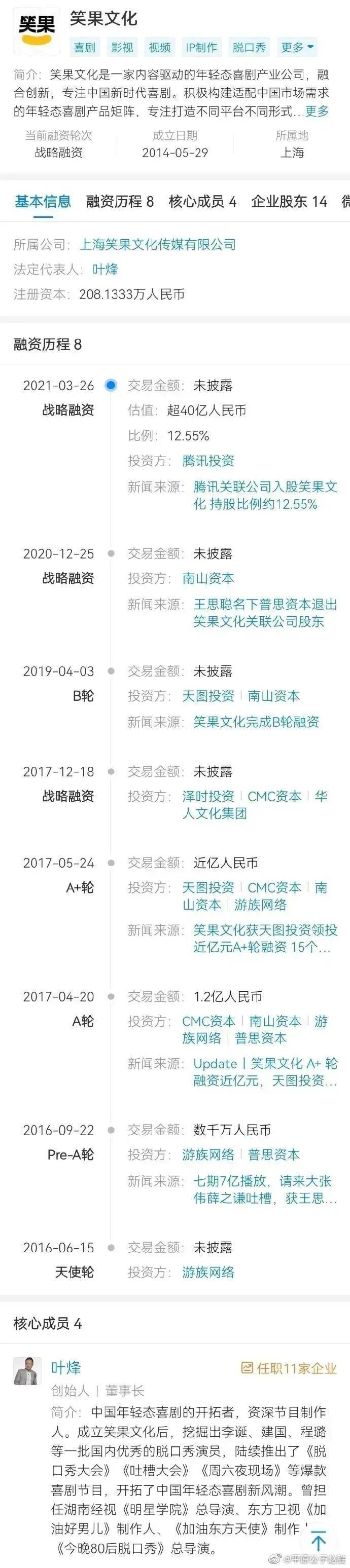 在我看来,笑果文化背后的股东和管理层,似乎总有一些“资本大佬”和“青年领袖”的身影。