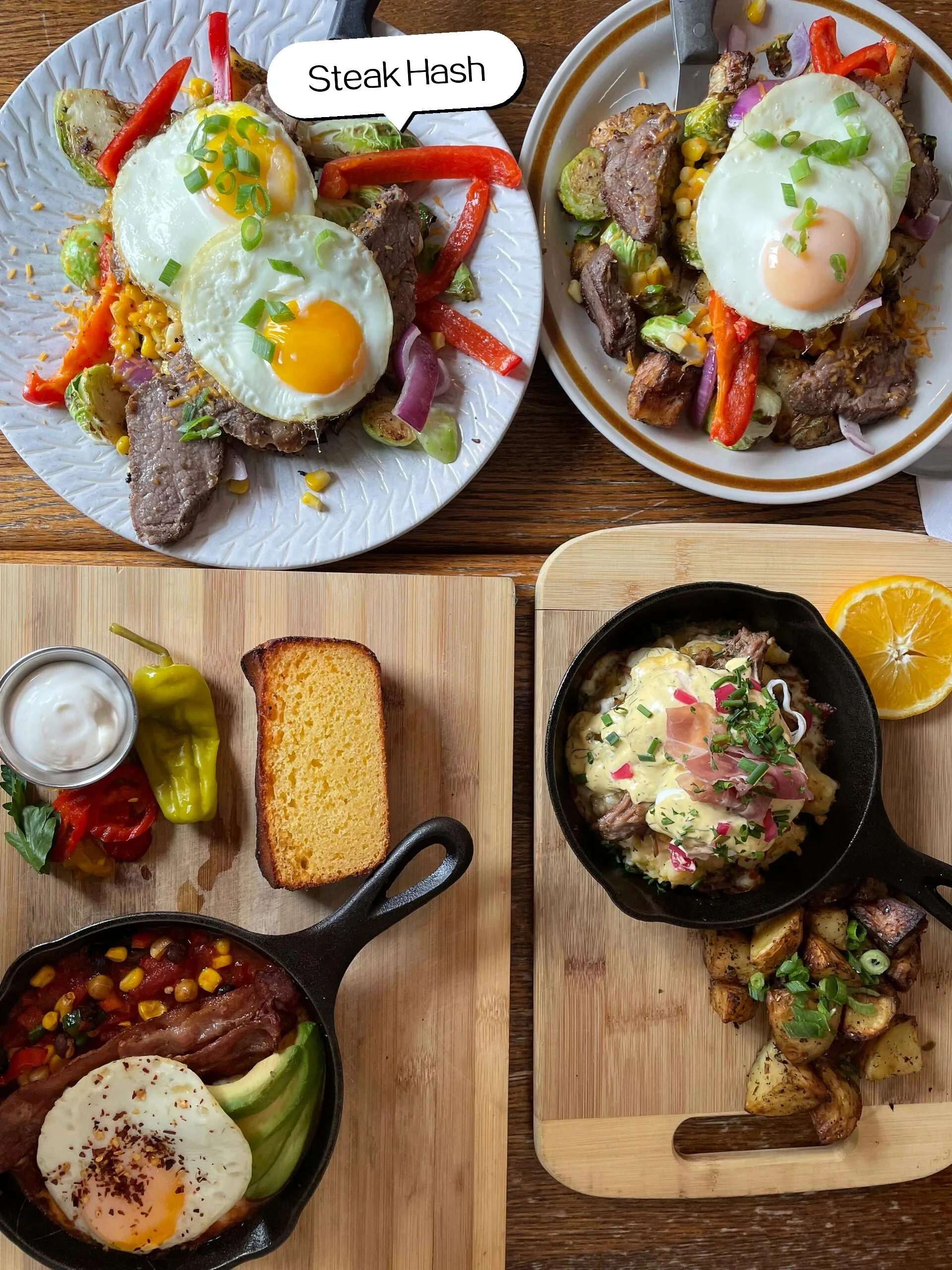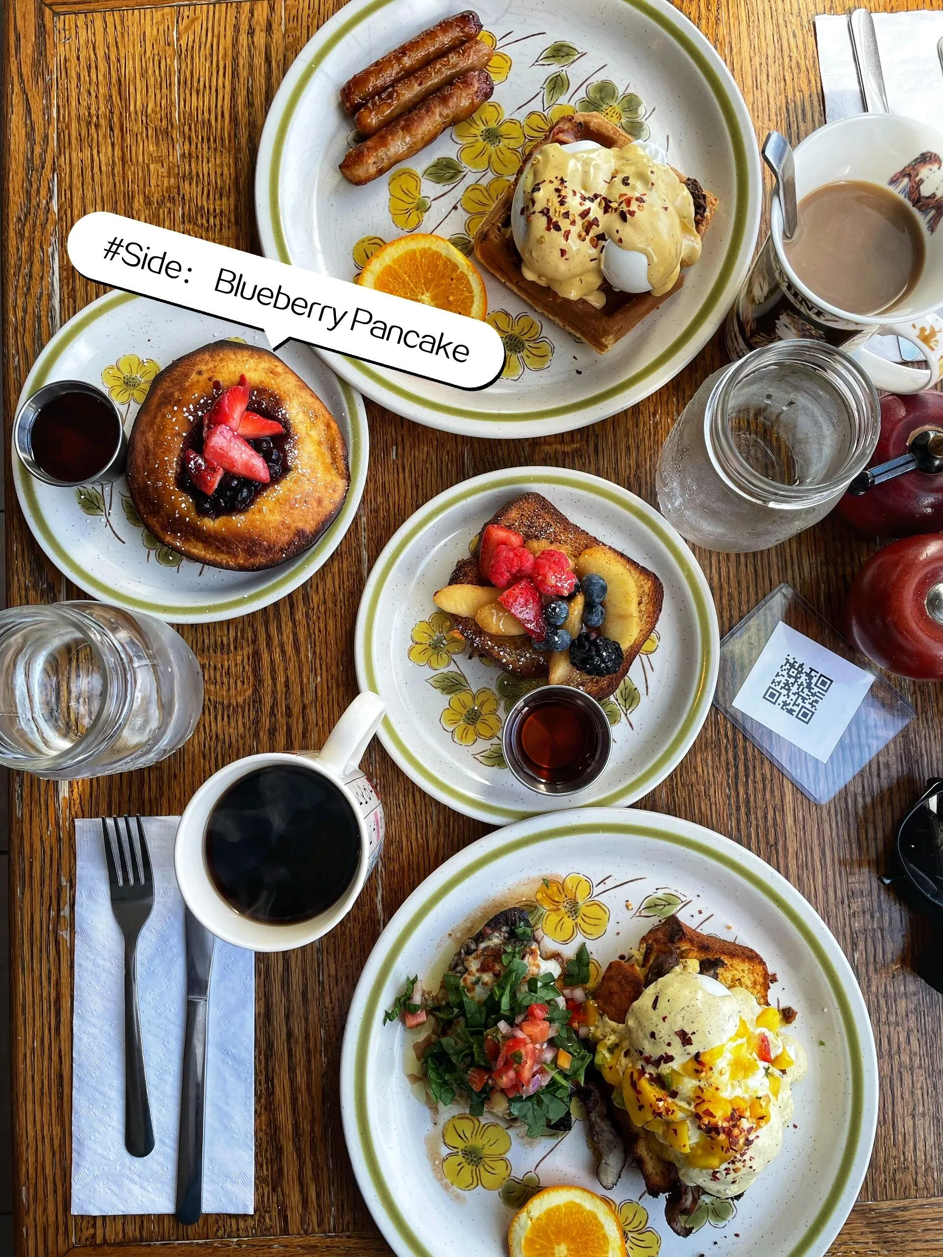 Pan Rancheros是一道口味较重的墨西哥风味菜品,以西红柿和土豆泥为主要底味。喜欢尝试新口味的食客可以点来尝鲜。Fun Guy Melt、steak hash和chicken waffle都是餐厅的招牌菜品,值得品尝。