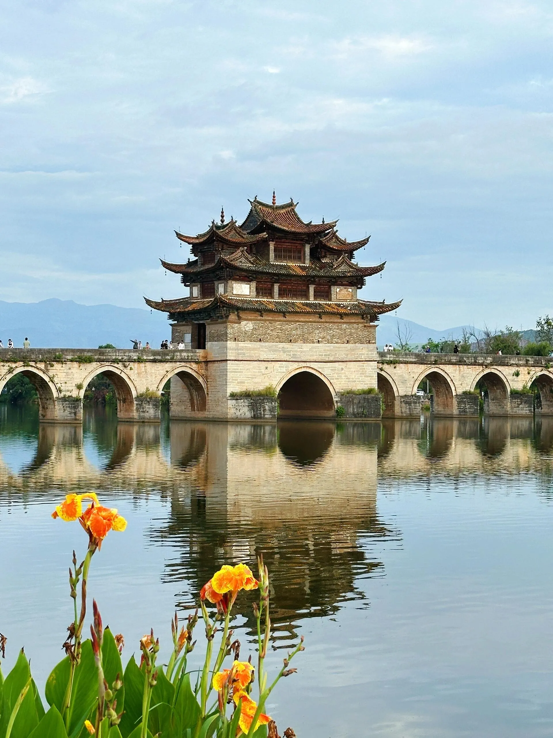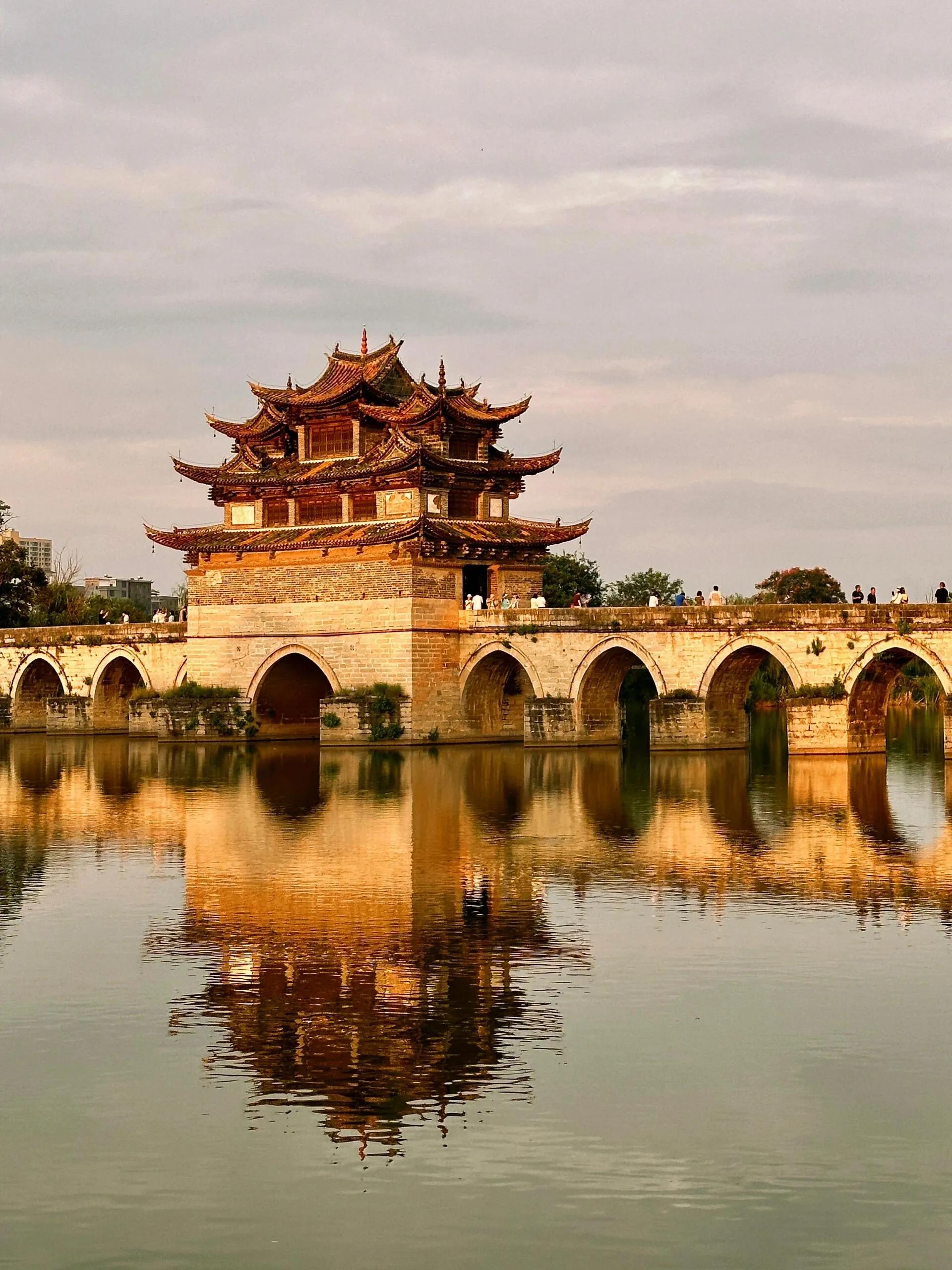 双龙桥,又称十七孔桥,有400多年历史。全国仅有两座,另一座在北京颐和园。日落时分,整座桥被夕阳染成金黄,是拍照的绝佳时机。桥旁的稻田和路边小吃也不容错过。