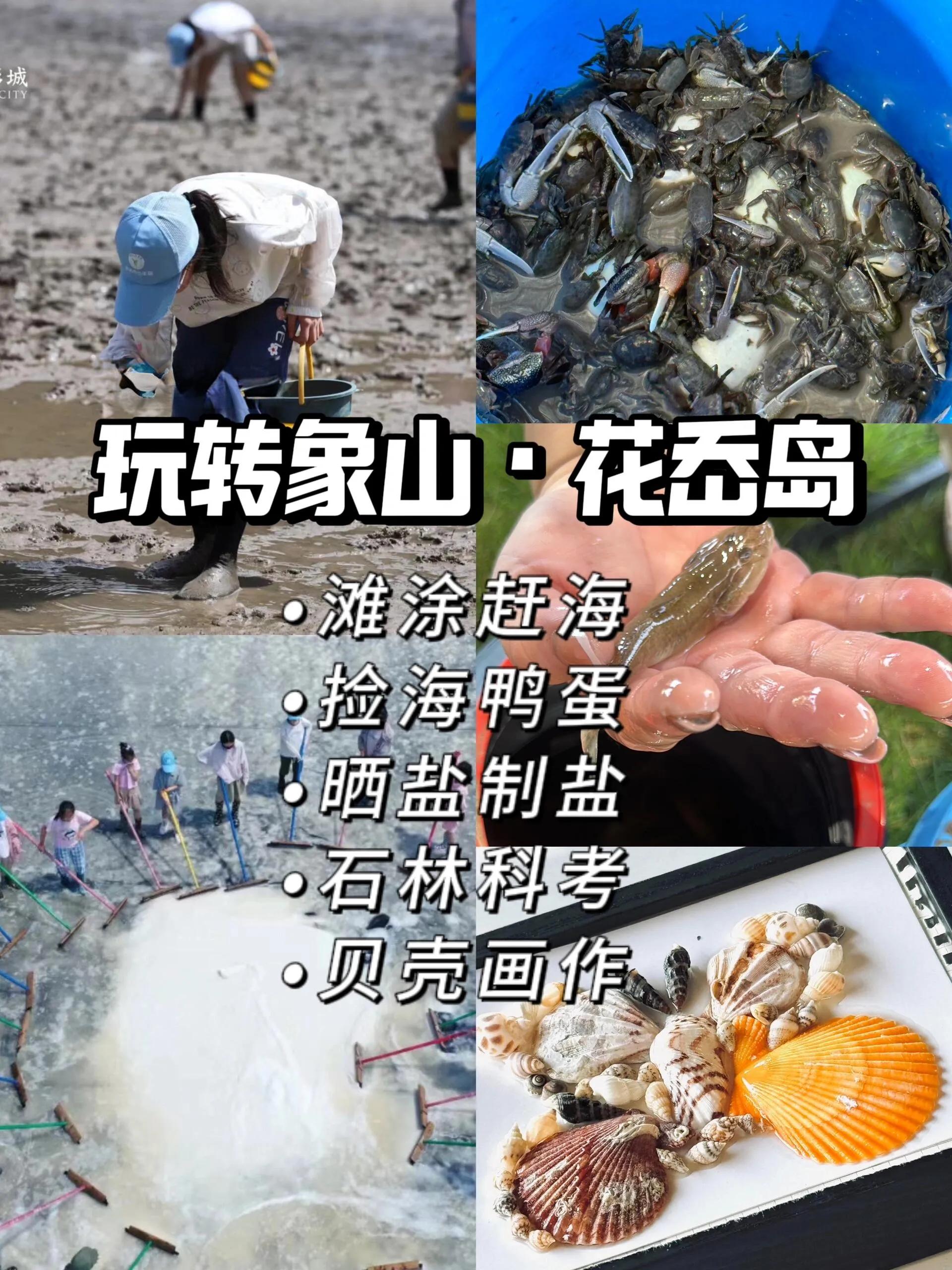 8:50上岛 - 9:00盐场晒盐 - 10:30石林 - 11:30午餐 - 12:30贝壳画/下午茶 - 14:00赶海体验 - 16:00准备出岛